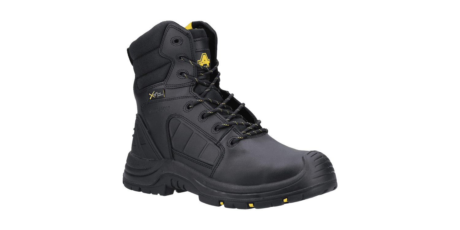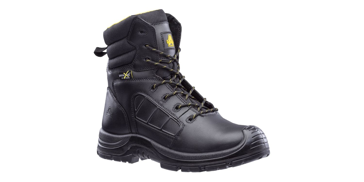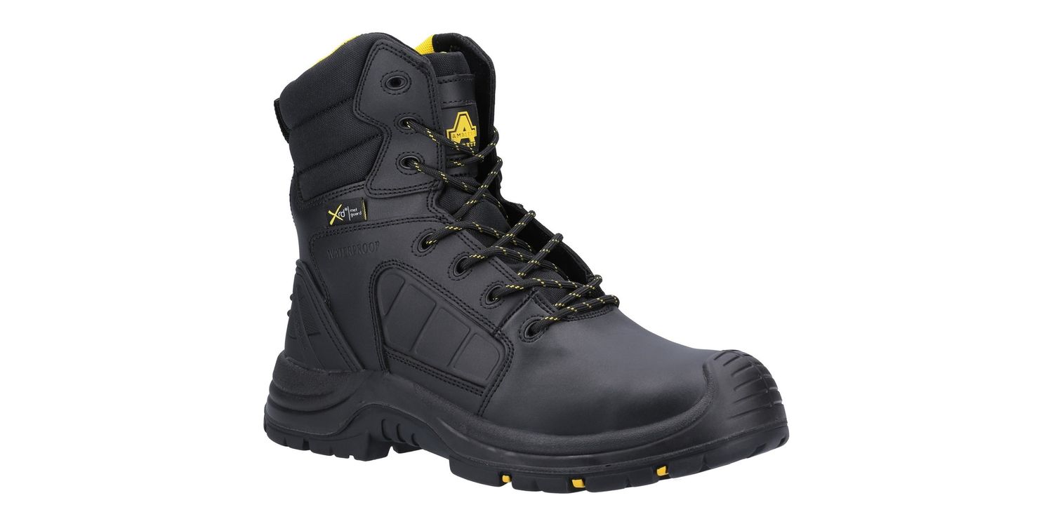 Mens robust metal-free waterproof hi-leg metatarsal safety boot with quick access YKK metal free side zip. TPU Heel Support for Extra Durability and Injected PU Midsole. Rubber Outsole Heat Resistant to 300 Degrees.