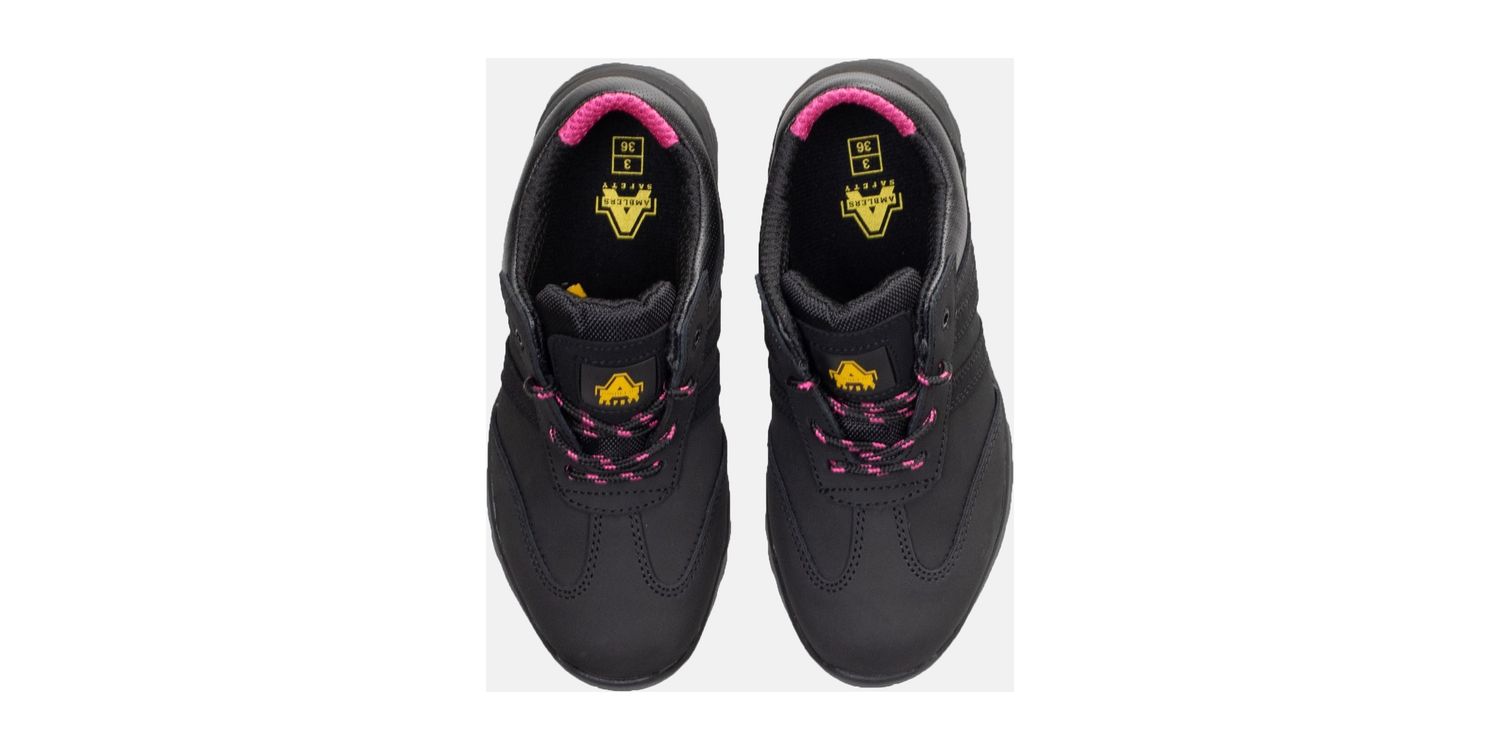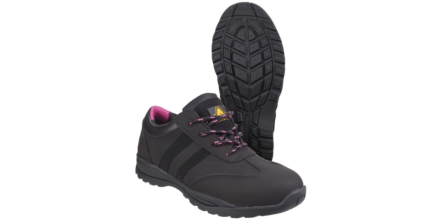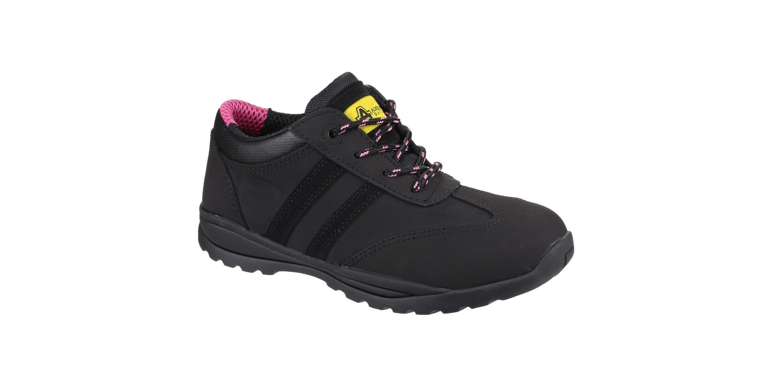 Women's modern lightweight safety trainer crafted with Nubuck Leather, PU padded collar, anti-static and durable full Rubber outsole.