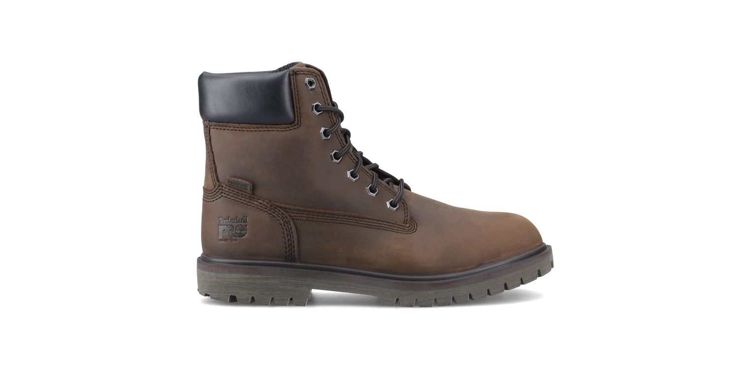 This waterproof boot is made with responsible and recycled materials. It features an alloy safety toe, puncture-resistant plate, and anti-fatigue technololgy for all-day comfort