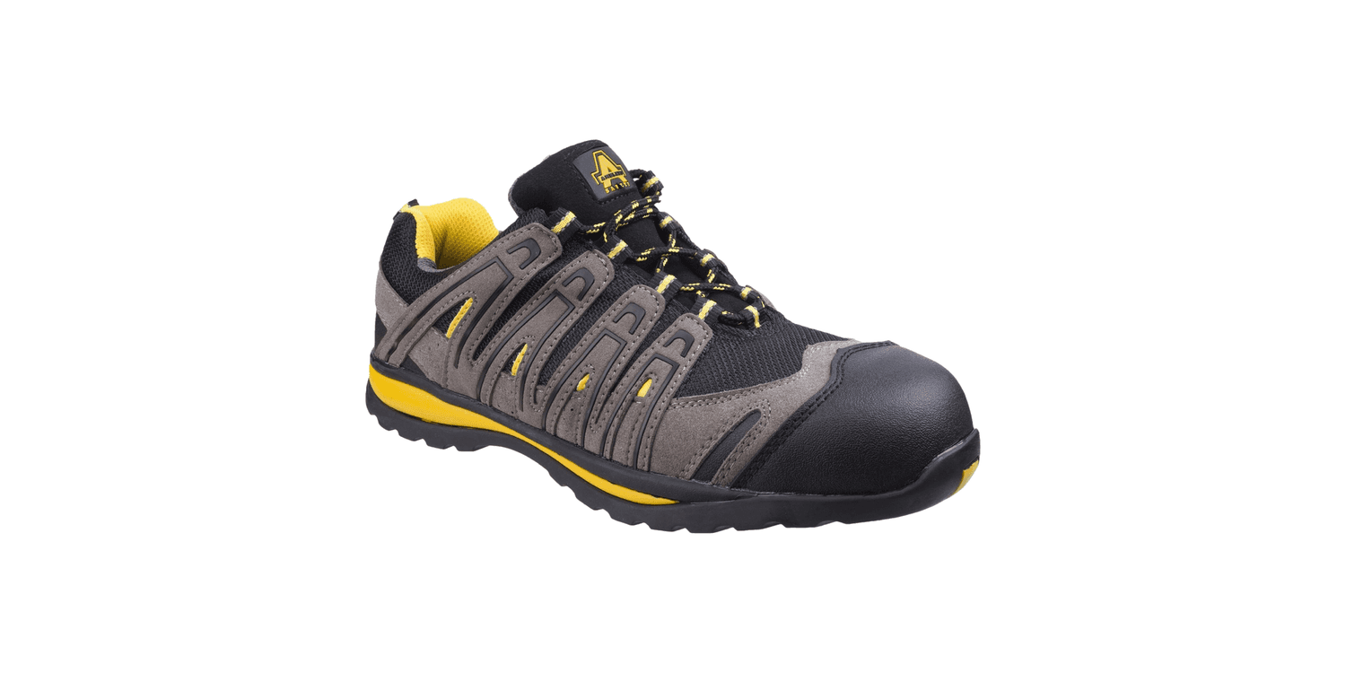 Flexible & lightweight fully non-metal safety trainer made with breathable mesh & microfibre upper, composite toe, non-metal midsole and rubber outsole