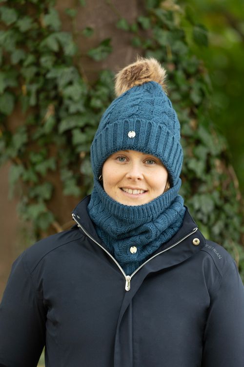 Hy Equestrian Melrose Cable Knit Bobble Hat - Petrol Blue