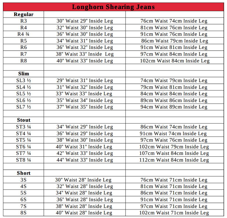 Click here to view Longhorn Size Chart