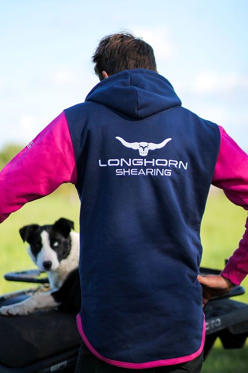 The Longhorn Shearing Long Tail Hoodie in Hampshire Blue and Pink is a stylish and practical layer designed for shearers who value comfort on and off the job. New for 2025, it combines a modern long tail fit with durable materials, making it ideal for demanding working days or casual wear.