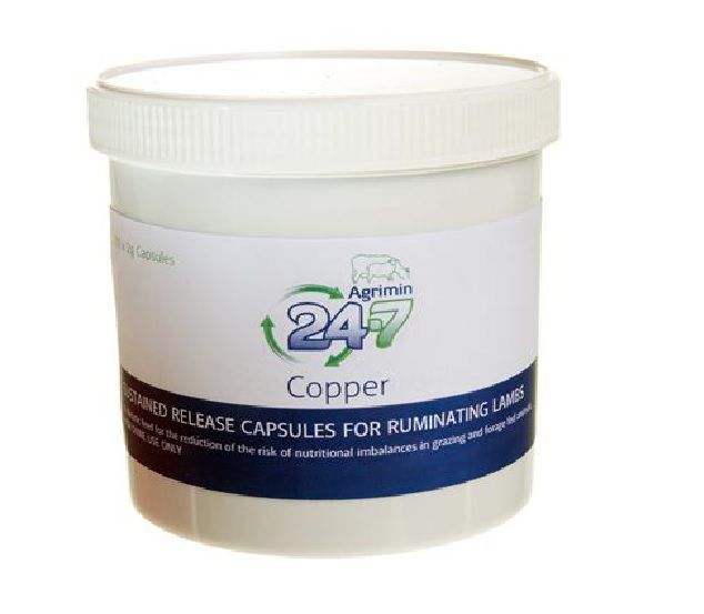 Agrimin 24-7 Copper Capsules for Lambs are designed for those who are have low soil and forage copper levels. The sustained release capsules are also for lambs where there are known to be copper antagonists such as molybdenum or where the iron and sulphur levels are known to be high.