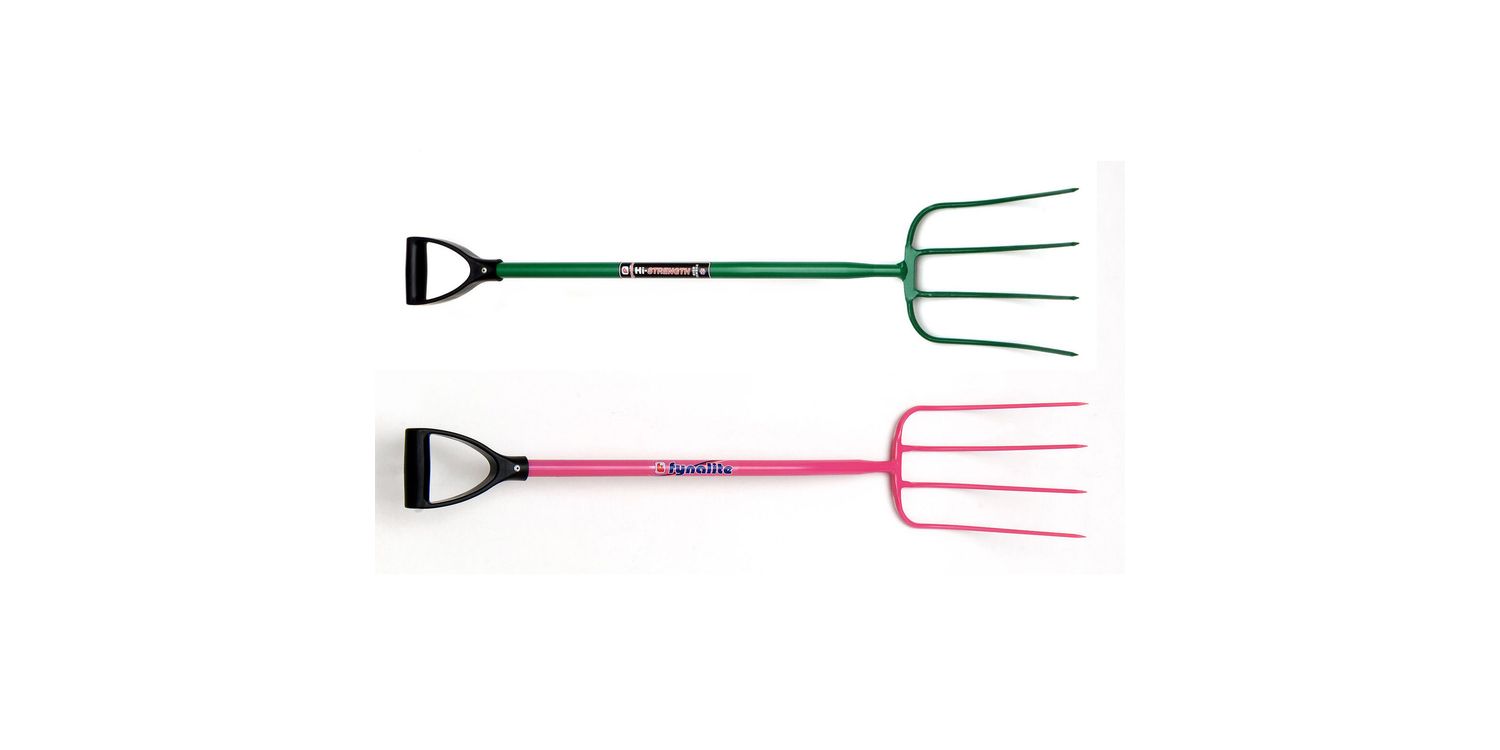 The Fyna-lite Hi-Strength Manure Fork - 4 Prong is a strong and light mild steel manure fork with carbon forged heads.