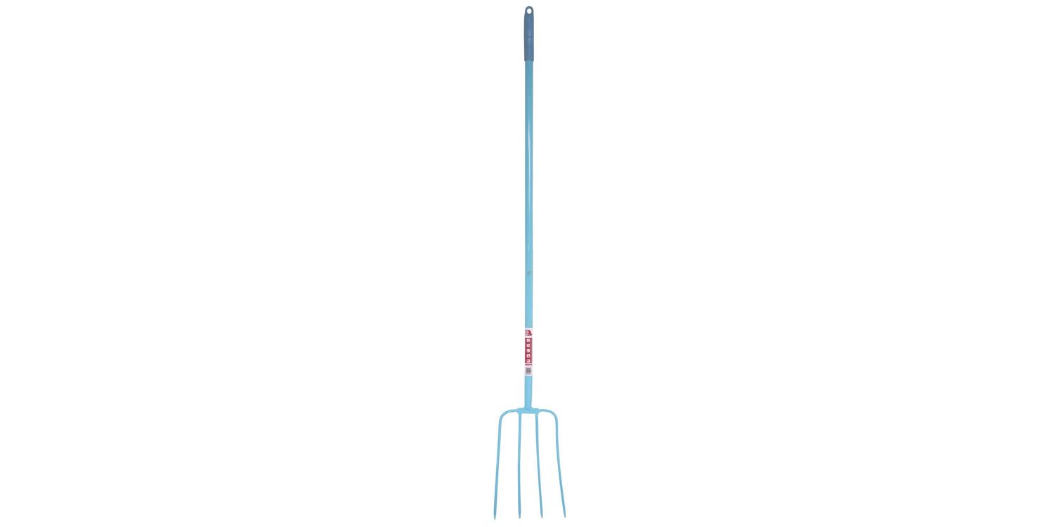 Strong manure fork with tubular steel shaft and a easy-grip handle.