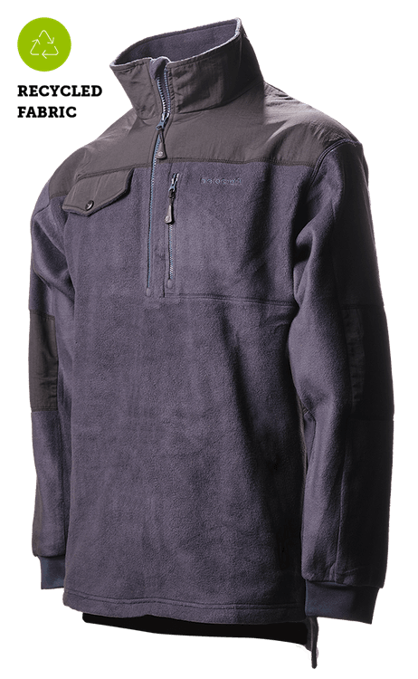 • Eco half zip workwear fleece made with recycled fabrics.