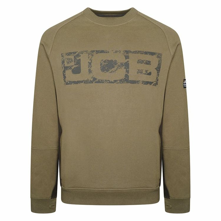 80% cotton, 20% polyester, 320gsm Heavyweight, cotton rich fabric Cordura® fabric elbow patches for durability Two side pockets with YKK zips Thumb grips sewn into cuffs Distressed JCB branding across front chest JCB branding