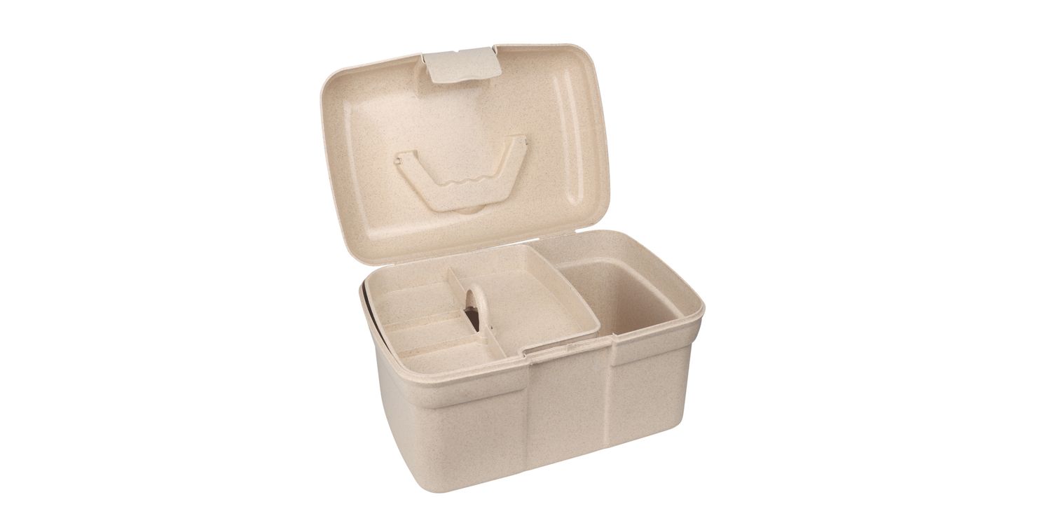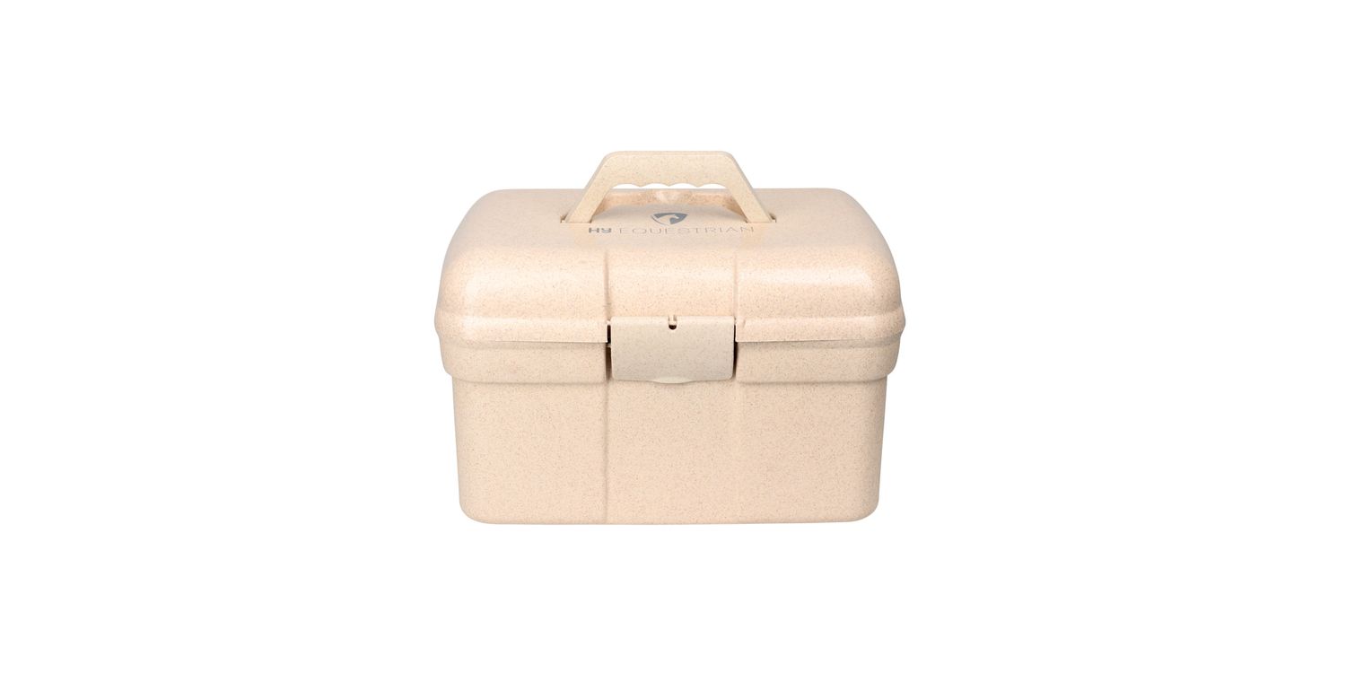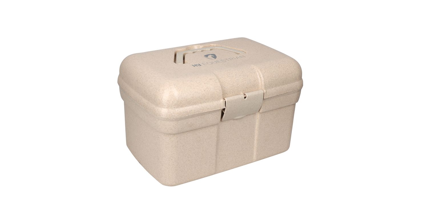 This eco-friendly grooming box is made from rice, straw and recycled plastics and is perfect for storing brushes and combs. This smart and durable box features a removable upper tray which is ideal for keeping small items safe and a practical carry handle for easy transportation. The easy-to-use clip fastening offers a secure closure to keep items safe. Matching brushes available. H 20cm x W 31cm x D 21cm.
