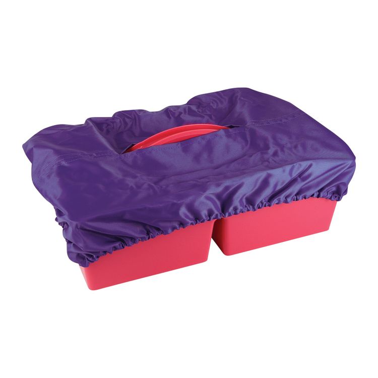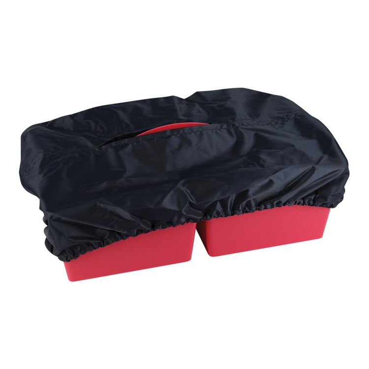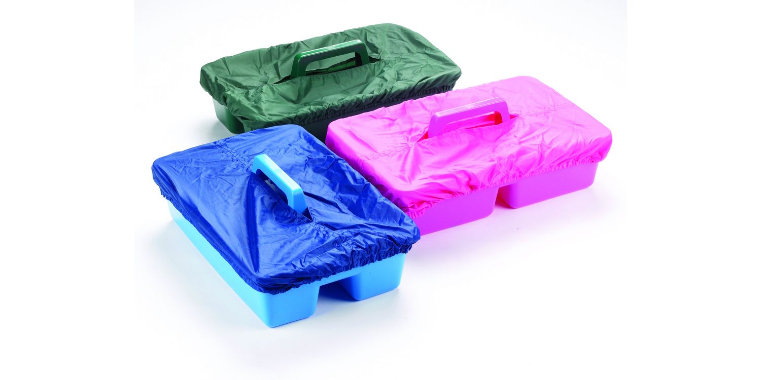 An elasticated waterproof nylon tack tray cover with a cut out for the carrying handle.