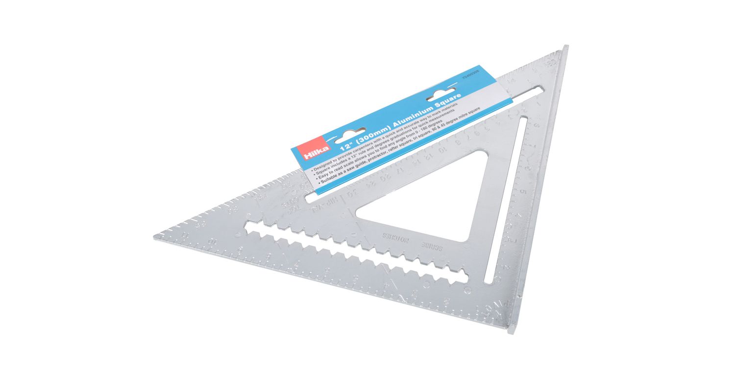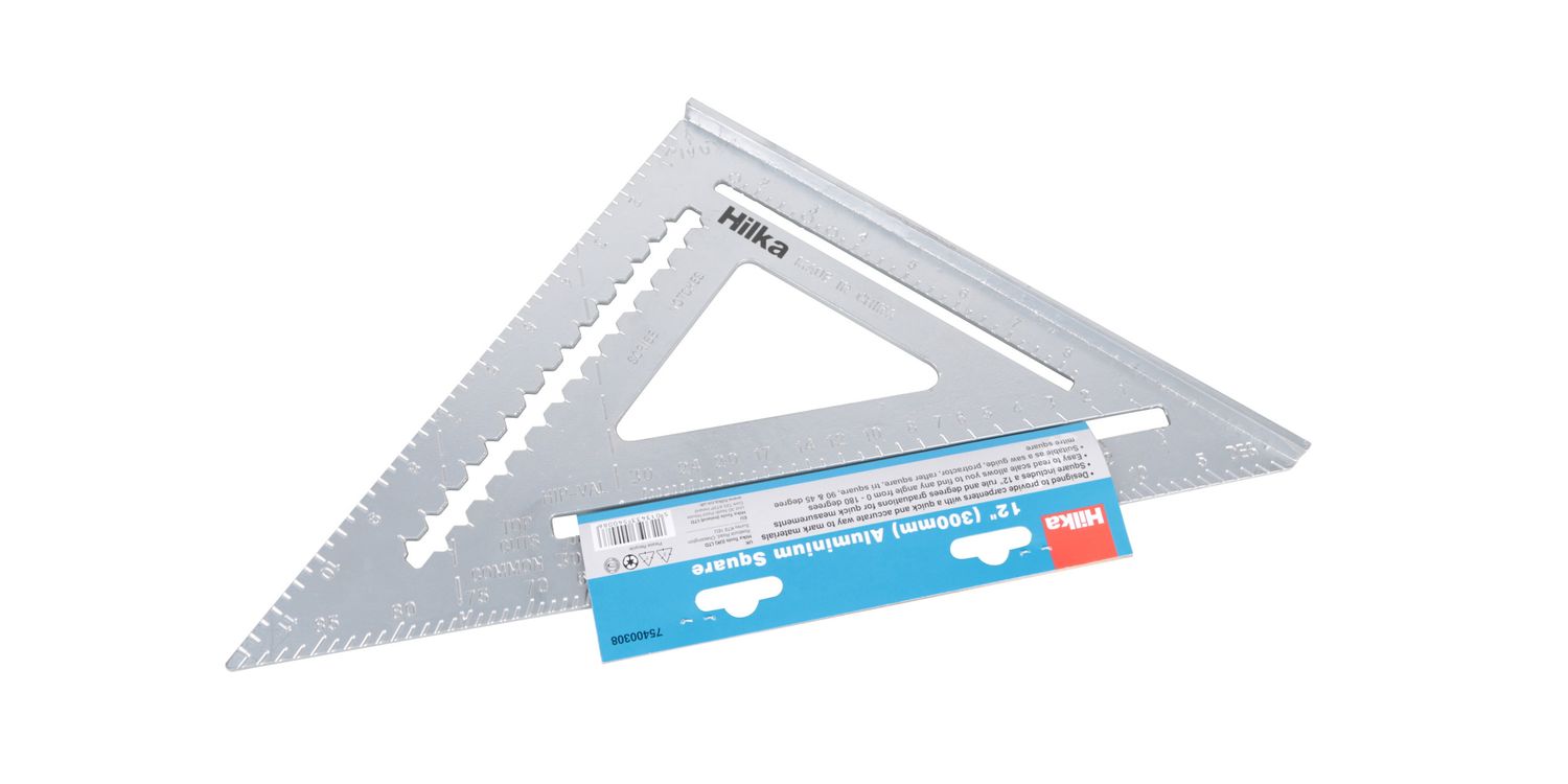 Designed to provide carpenters with a quick and accurate way to mark materials. Square includes 6" rule & degrees graduations for quick measurements. Easy to read scale allows you to find any angle from 0 - 180 degrees. Suitable as a saw guide, protractor, rafter square, tri-square, 90° & 45° mitre square.