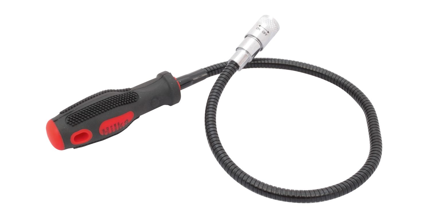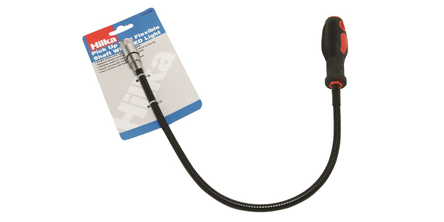 Bright white LED light at pickup end with super strong 6lb magnet. Magnet shield confines magnet force to the tip with flexible shaft for hard-to-reach spots. Overall length 58cm with the flexi shaft 48cm. 17mm diameter head. 3 button cell batteries (AG13 / L1154) supplied.
