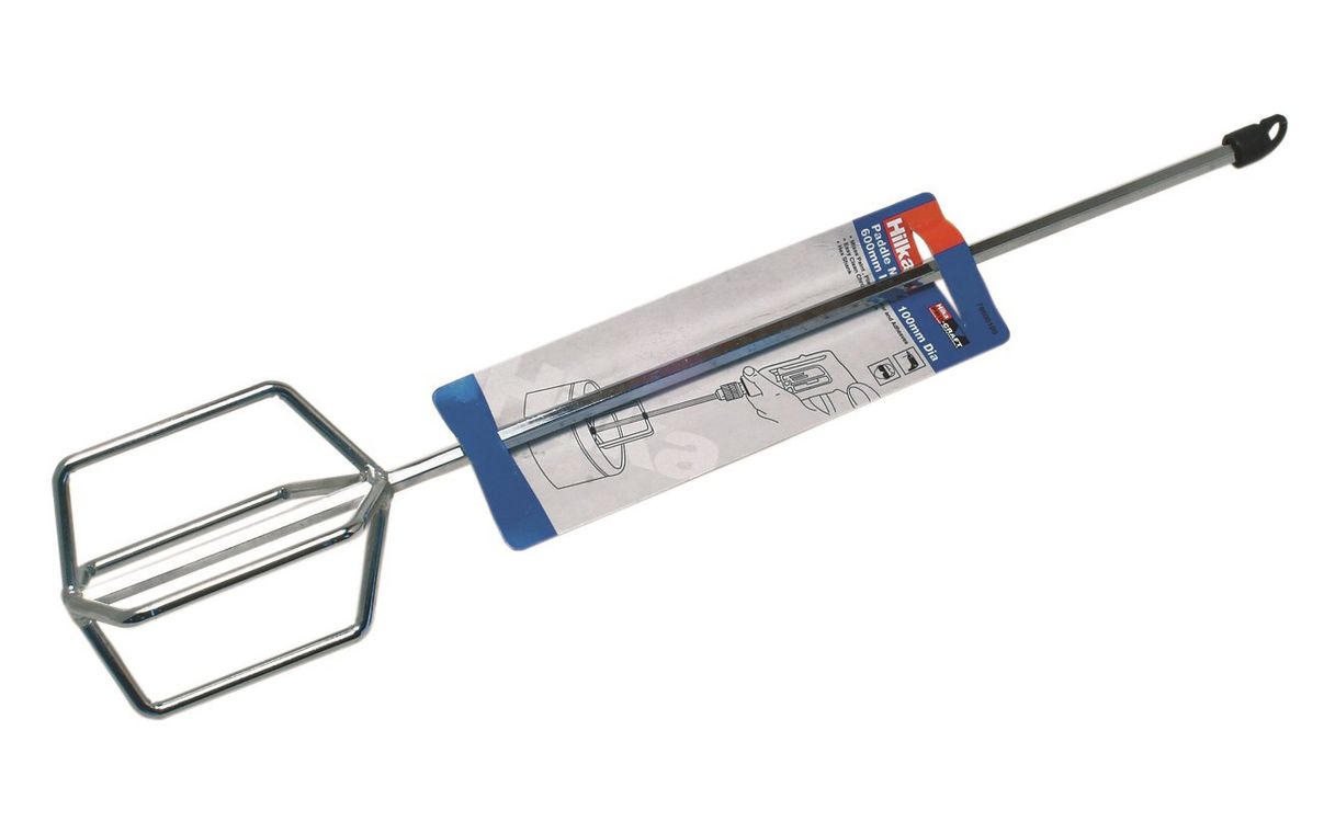 Size: 600mm long x 100mm diameter easy clean hex shank. Use with electric drills to mix paint, plaster, cement slurries and textured coatings. Requires 10mm or larger chuck with max 600rpm.