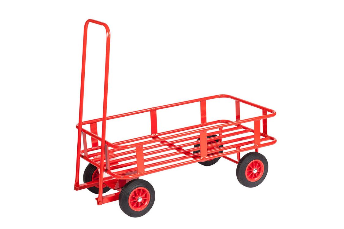 All steel tubular construction creating a practical and lightweight workhorse for where style really matters. The tubular design increases load grip and the contact area is reduced so contact pressure increases. The 15cm high sides provide containment of smaller boxes, crates and bottles, etc. Highly manoeuvrable with long handle and turntable steering.