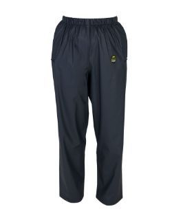 Farmtrak PU Parlour Trousers in Navy, designed by farmers for farmers. A unique combination of polyester & polyrethene. The trousers are light, flexible and comfortable to wear and feature an elasticated waist. Specially designed to be fully waterproof, breathable and comfortable to wear. Suitable for use indoors and outdoors. Side pocket opening on both sides. Fully machine washable. 100% PU outer material. Available in Sizes S - XL.