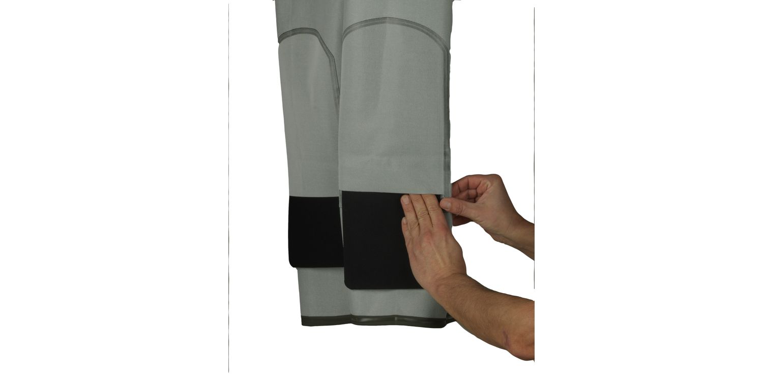 The high quality trousers have adjustable elastic braces that are completely detachable. They have a reinforced front and a protective triple layer on the knees, where there is room to add extra neoprene padding if needed.