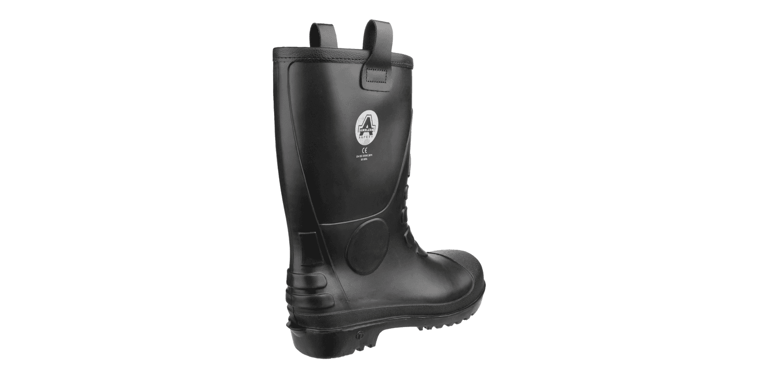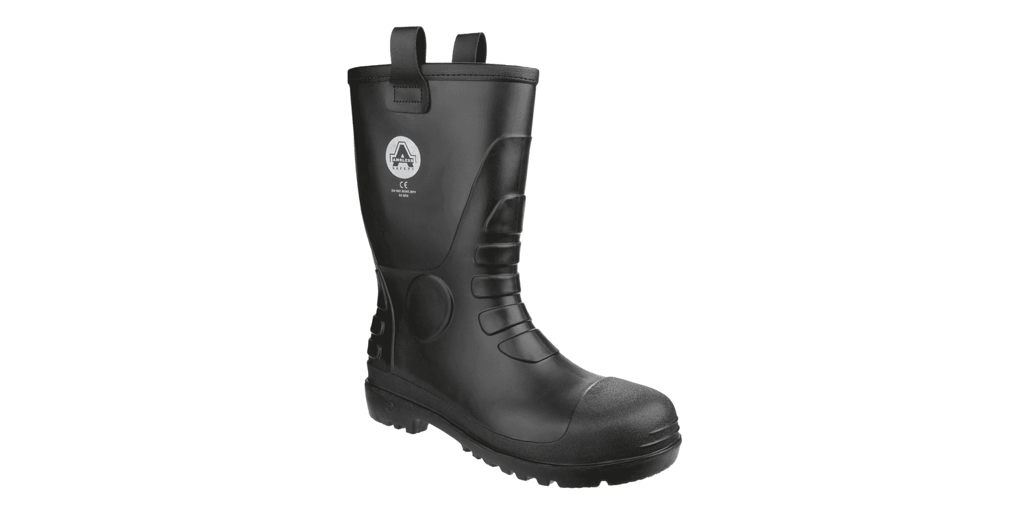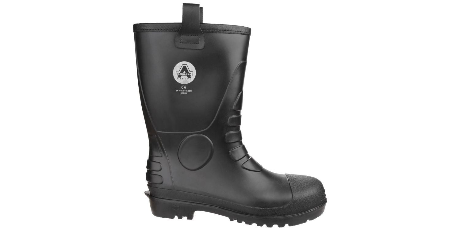Pull on PVC safety rigger boot with steel toe & midsole, warm faux fur lining, antistatic, PVC and nitrile rubber outsole