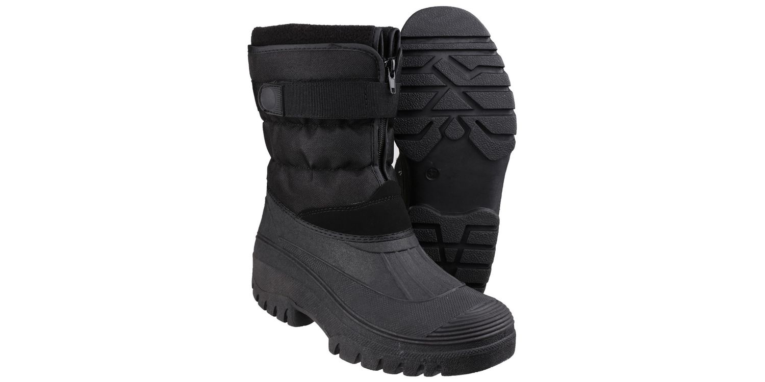 Fleece lined hybrid snow boot with waterproof rubber galosh, gusset zip front and touch fastening strap.