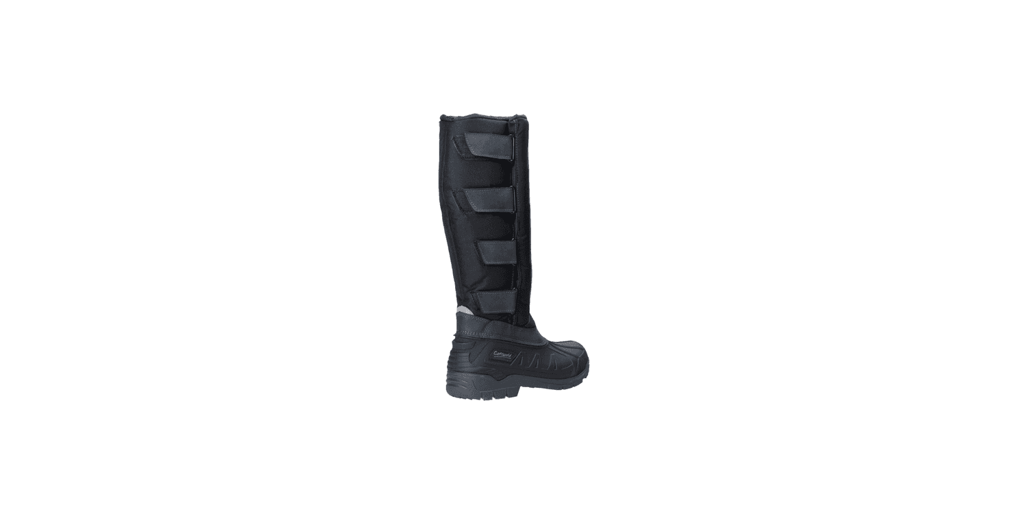Windproof and waterproof mens hybrid winter yard boot with wide adjustable fit touch-fasten thermo uppers and robust practical chunky rubber galosh non-slip sole. Padded top to toe with microfiber faux sheering keeping feet warm in cold conditions.