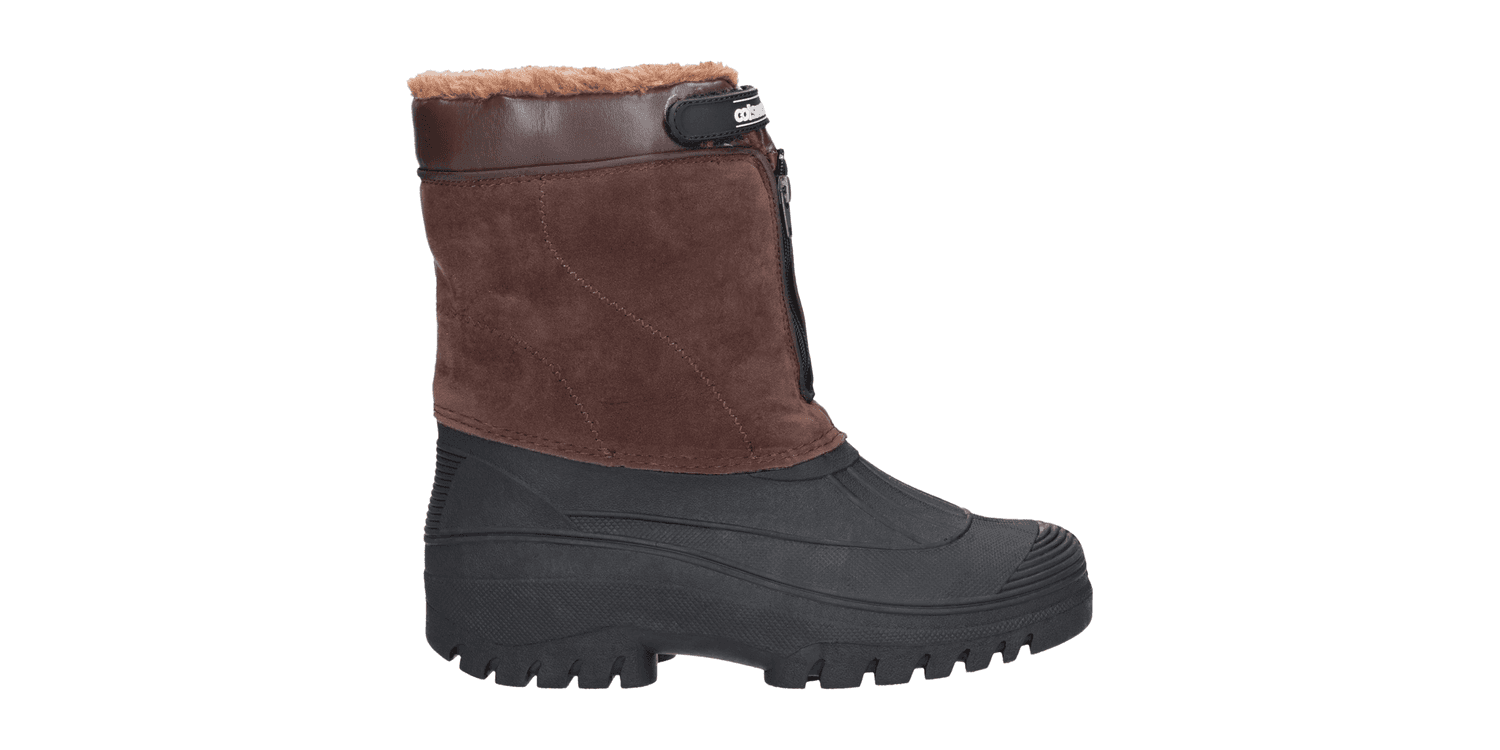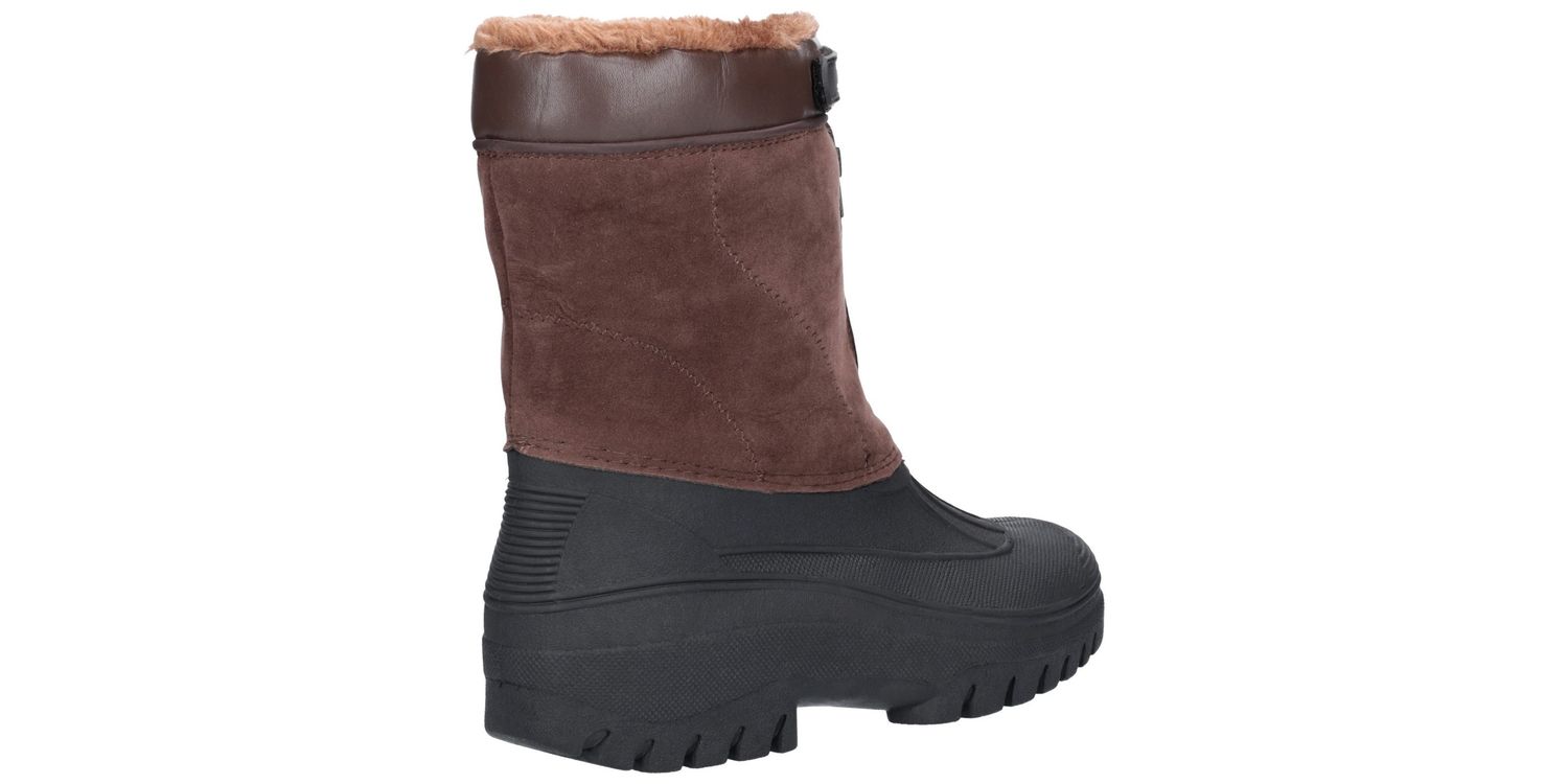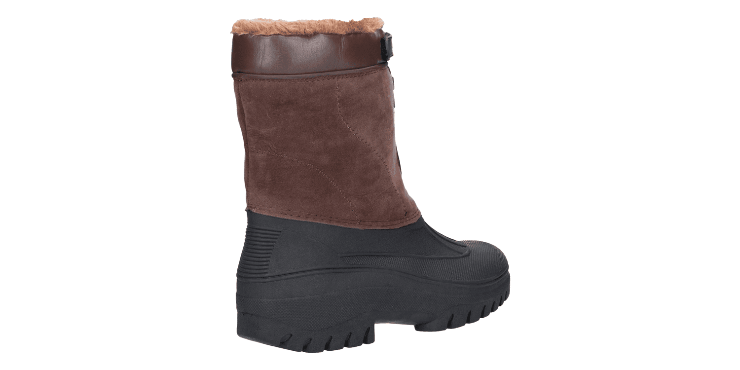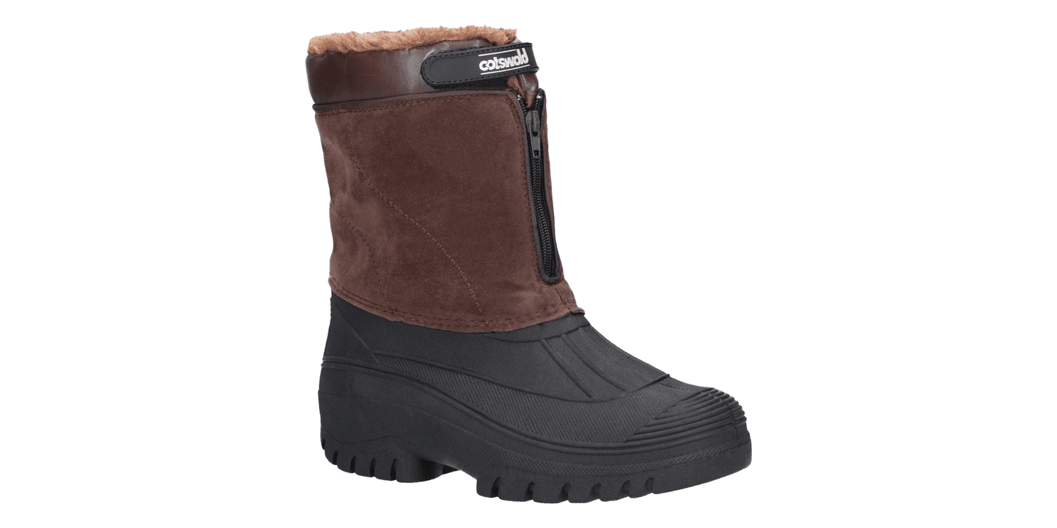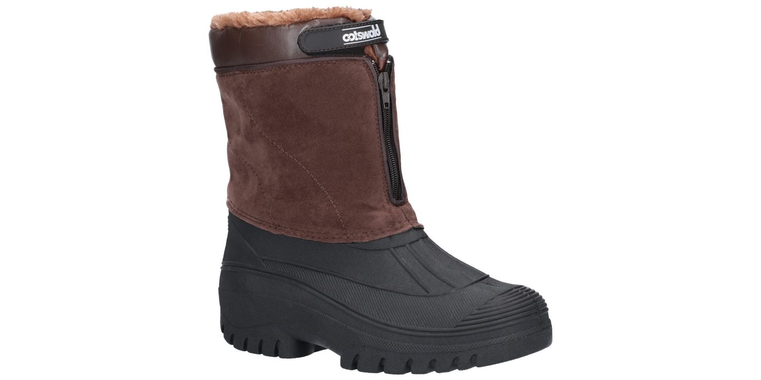 Venture hybrid weather boot from Cotswold Shoes. A stylish design with a luxury Faux Suede shaft and a fully waterproof moulded rubber galosh designed to combat the elements. Front zip entry and warm faux fur lining.