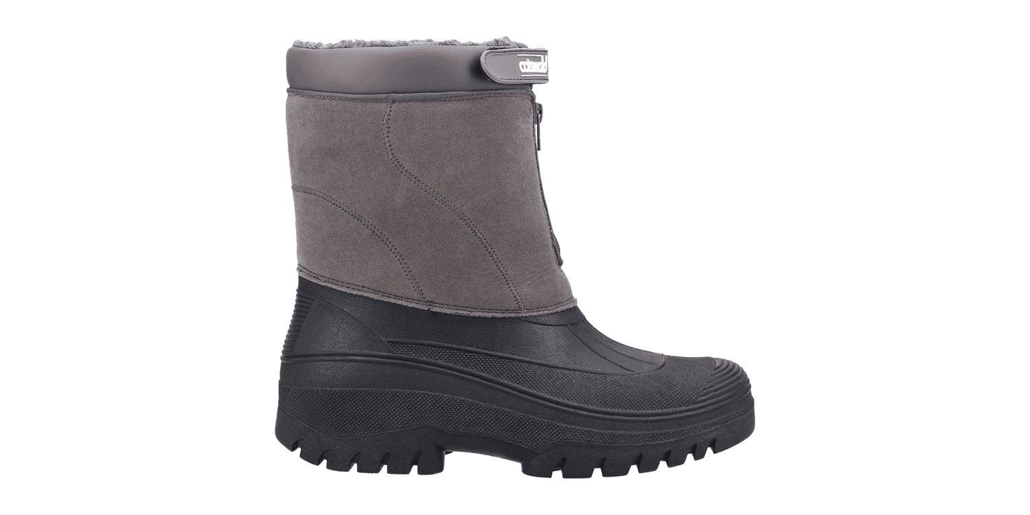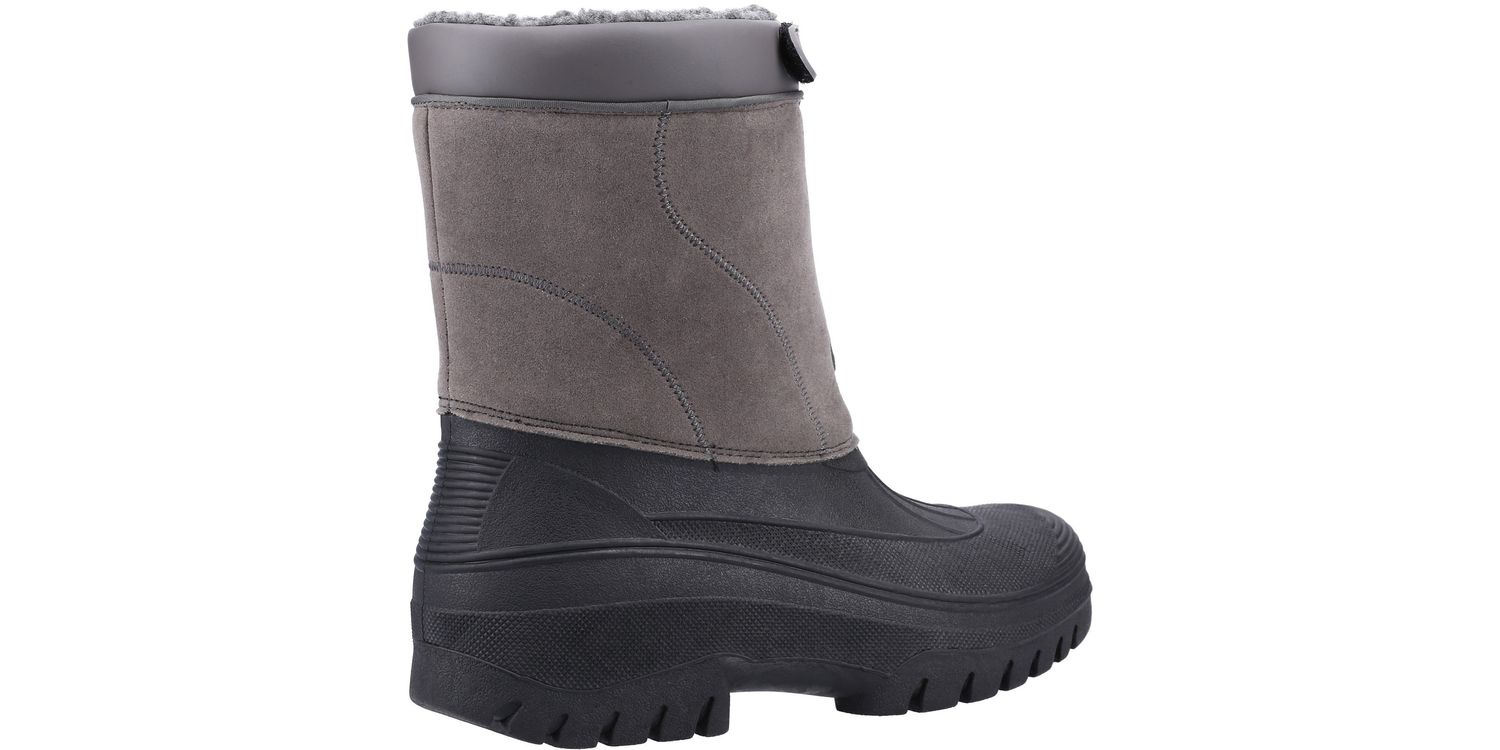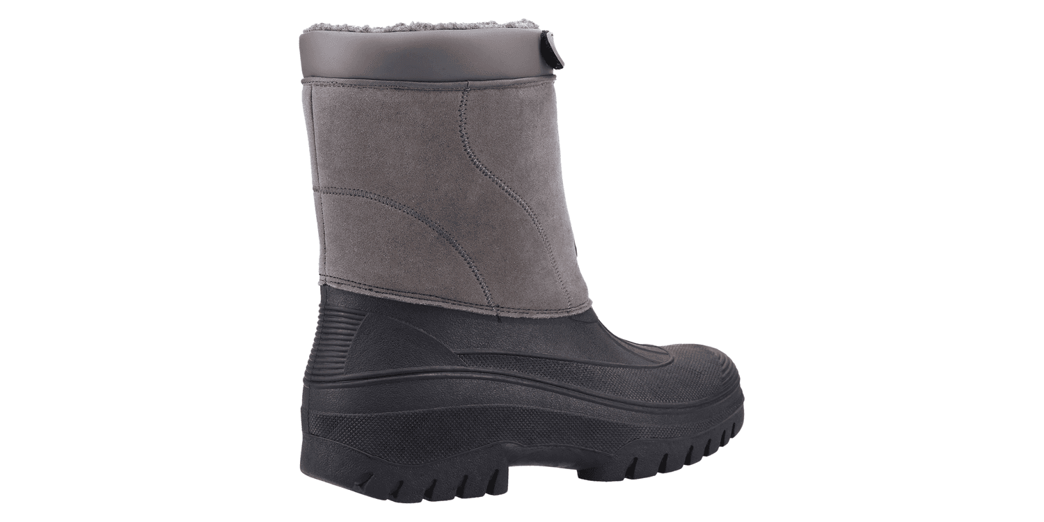Venture hybrid weather boot from Cotswold Shoes. A stylish design with a luxury Faux Suede shaft and a fully waterproof moulded rubber galosh designed to combat the elements. Front zip entry and warm faux fur lining.