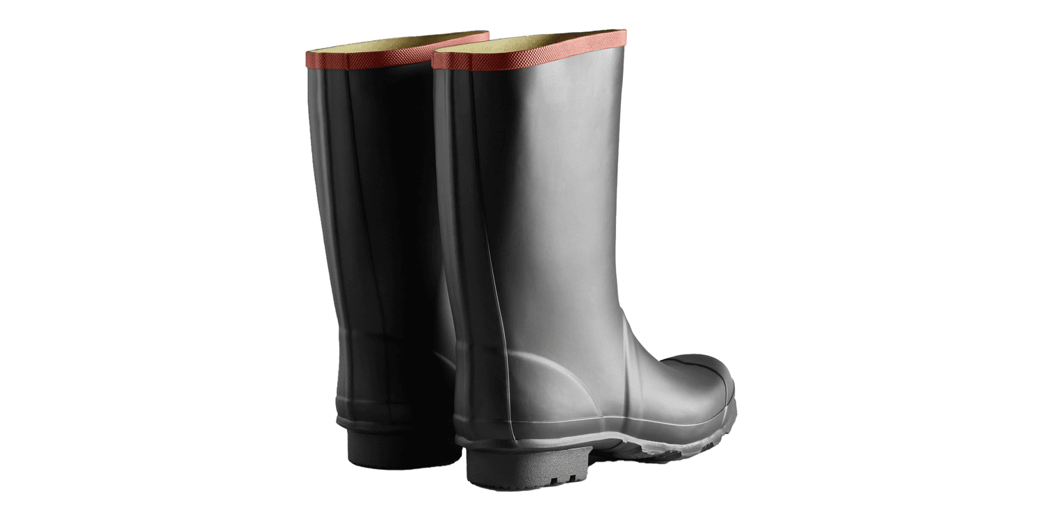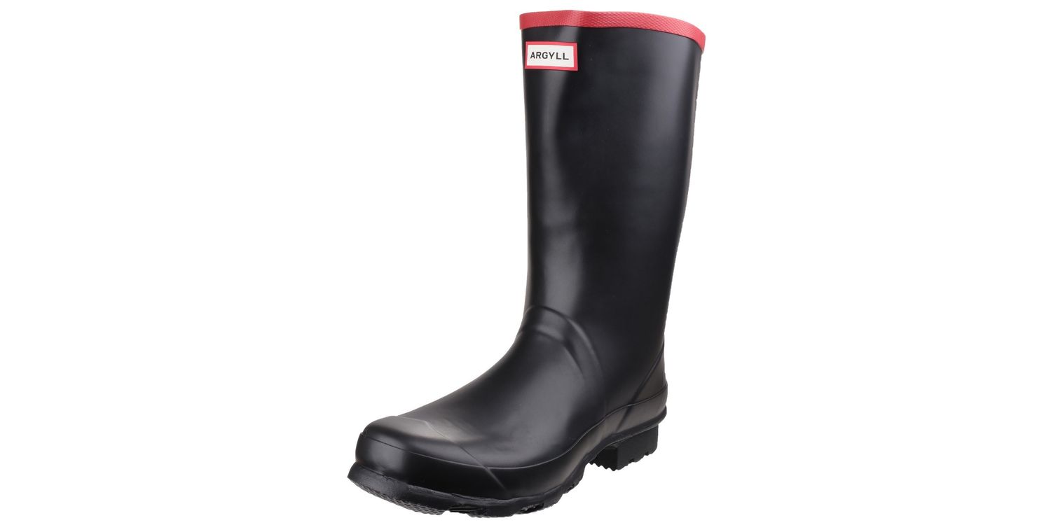 The Argyll is a short boot for rough environments and farming, this design is made from heavy-duty rubber. This boot has a generous calf width and a wide tread sole in a zigzag construction for mud release.