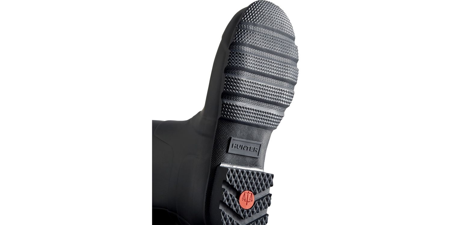 • Formed of natural rubber, each pair is made from 28 hand-cut parts and assembled over three days on an aluminium last bespoke to Hunter, before being vulcanised for superior protection.