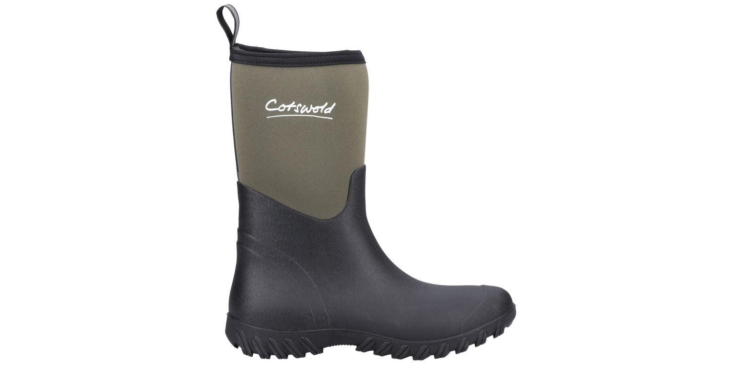 A classic neoprene addition to the Cotswold Shoes Welly Range. A mid height welly with neoprene upper to keep your feet warm and dry in wet weather conditions. With pull on loop for ease of putting on. In a classic country green colour.