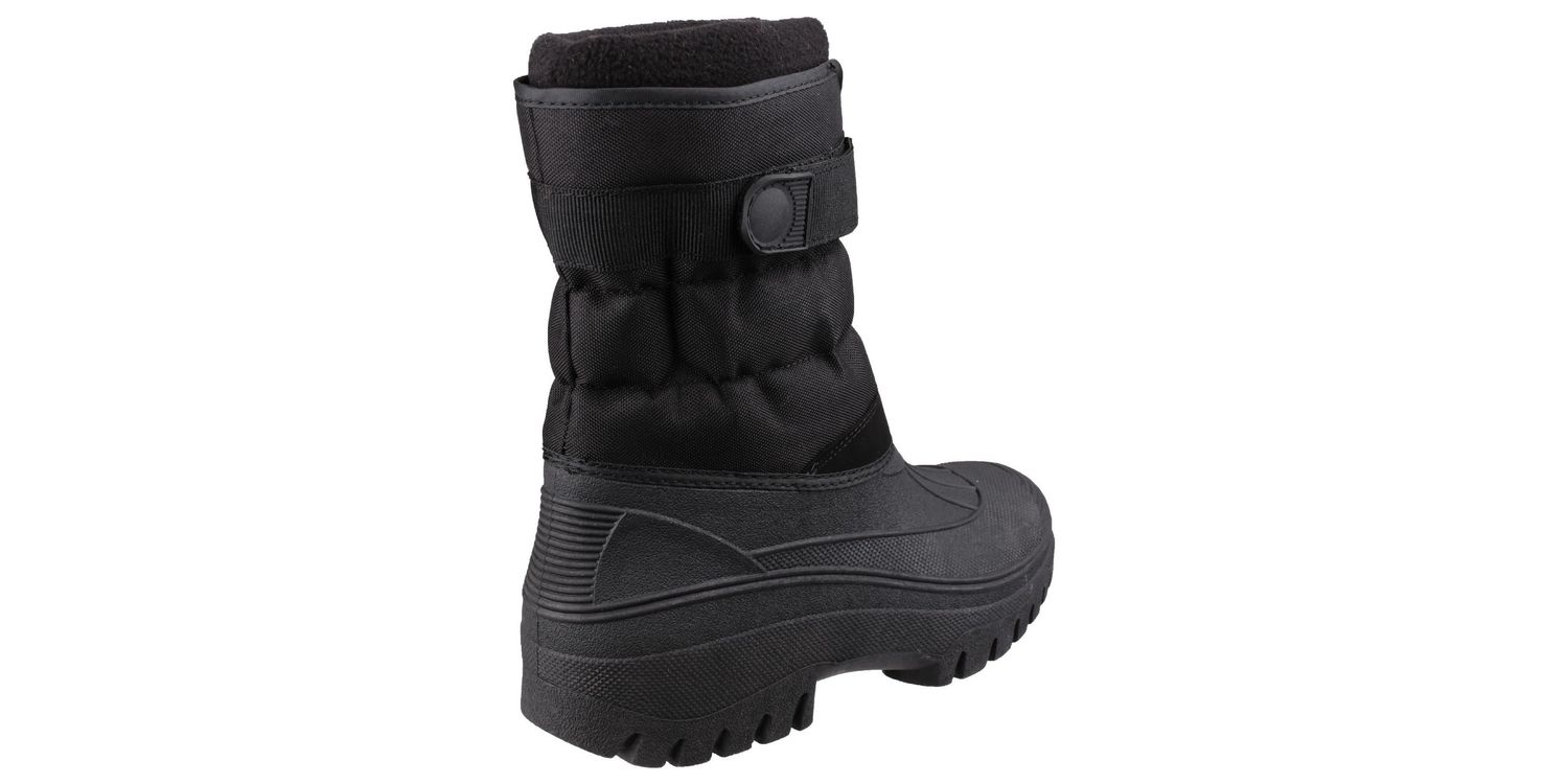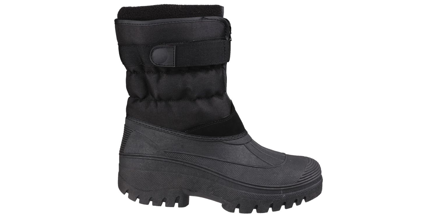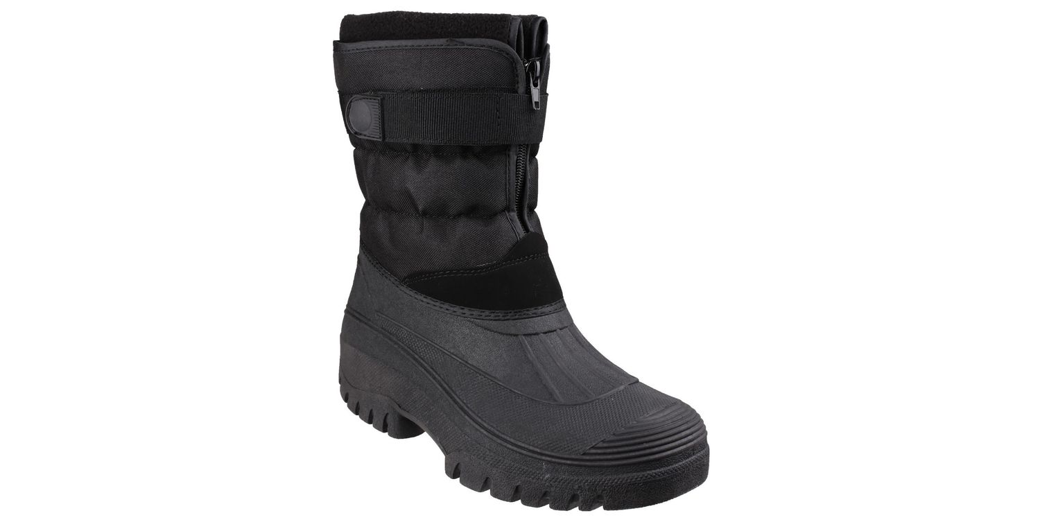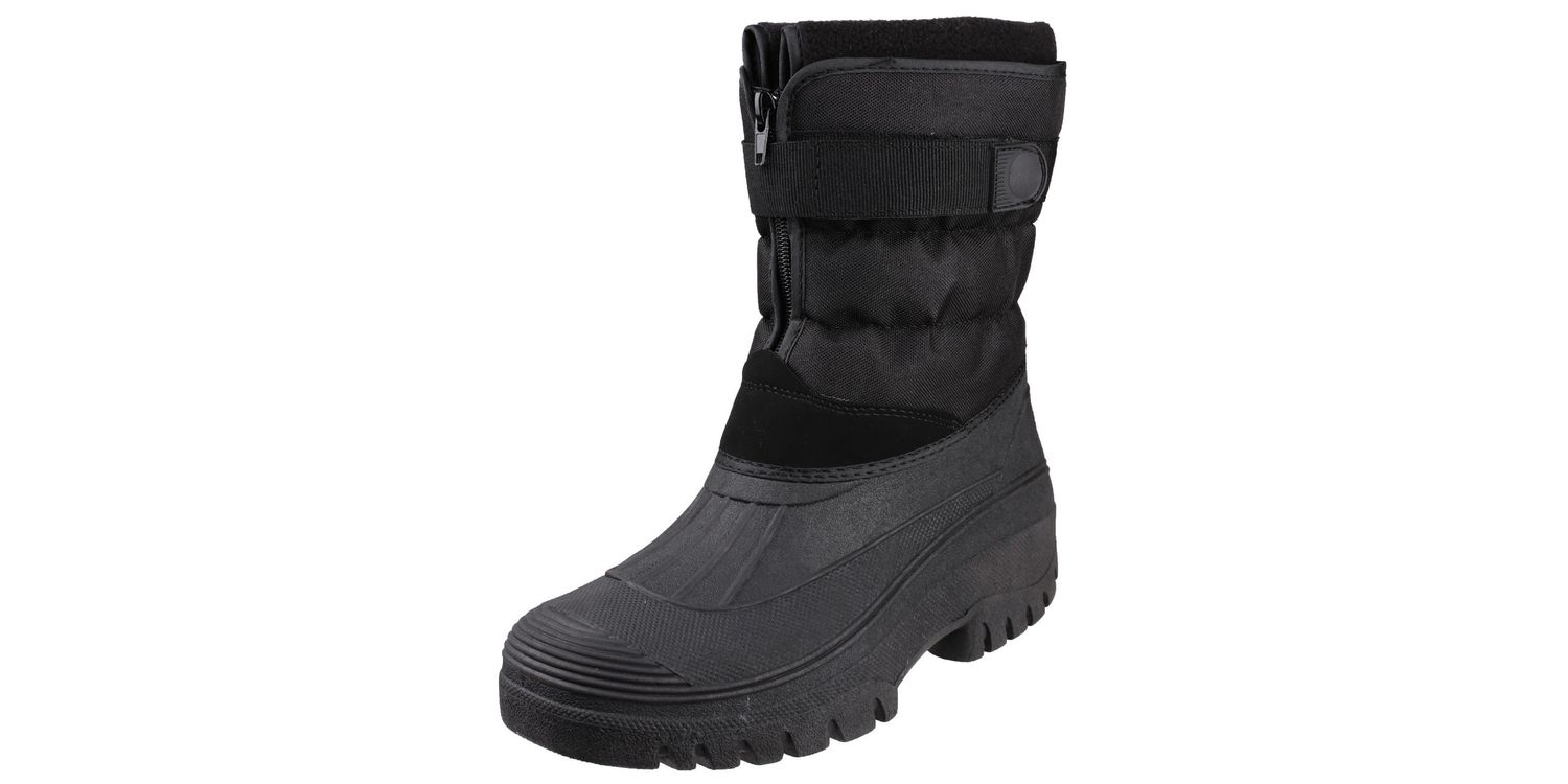 Fleece lined hybrid snow boot with waterproof rubber galosh, gusset zip front and touch fastening strap.