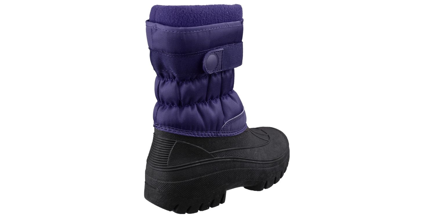 Fleece lined hybrid snow boot with waterproof rubber galosh, gusset zip front and touch fastening strap.