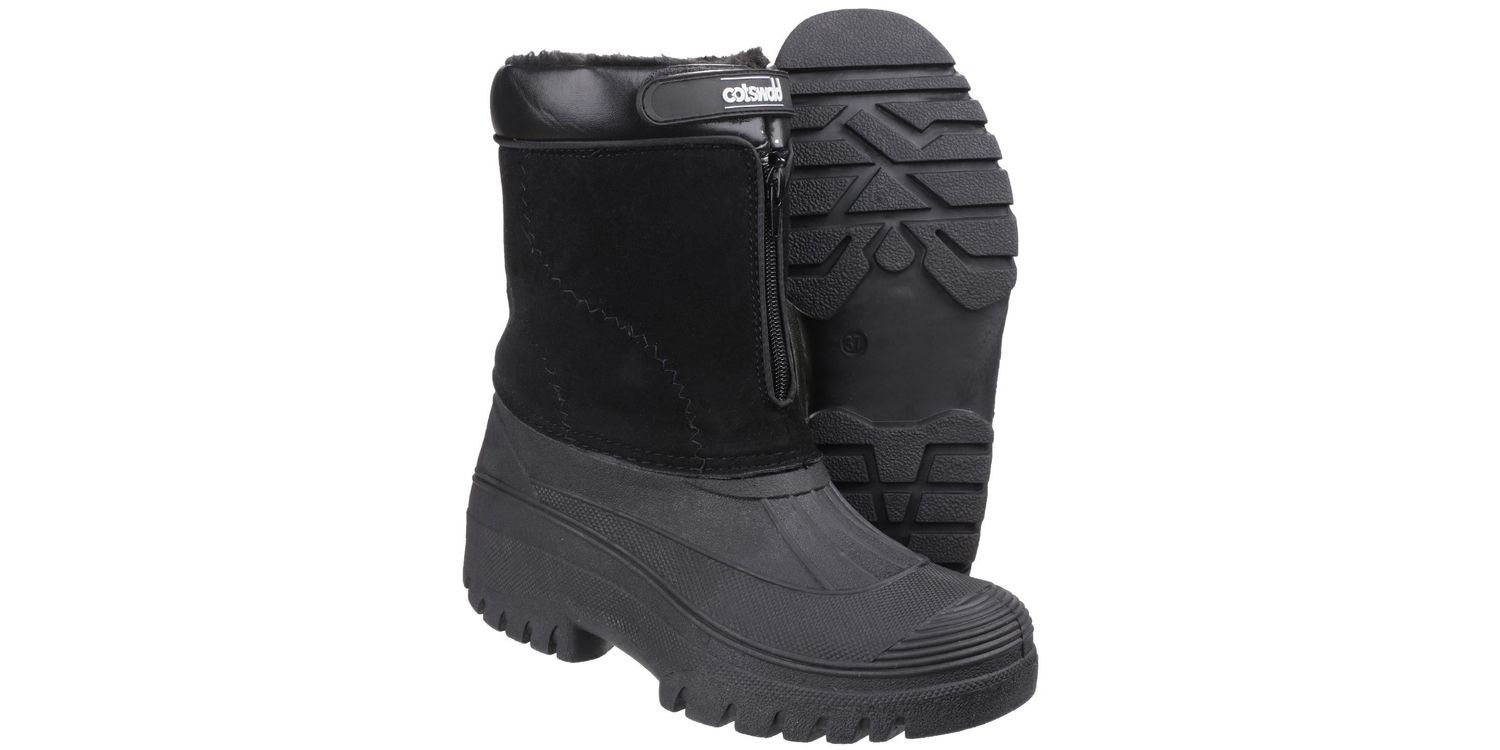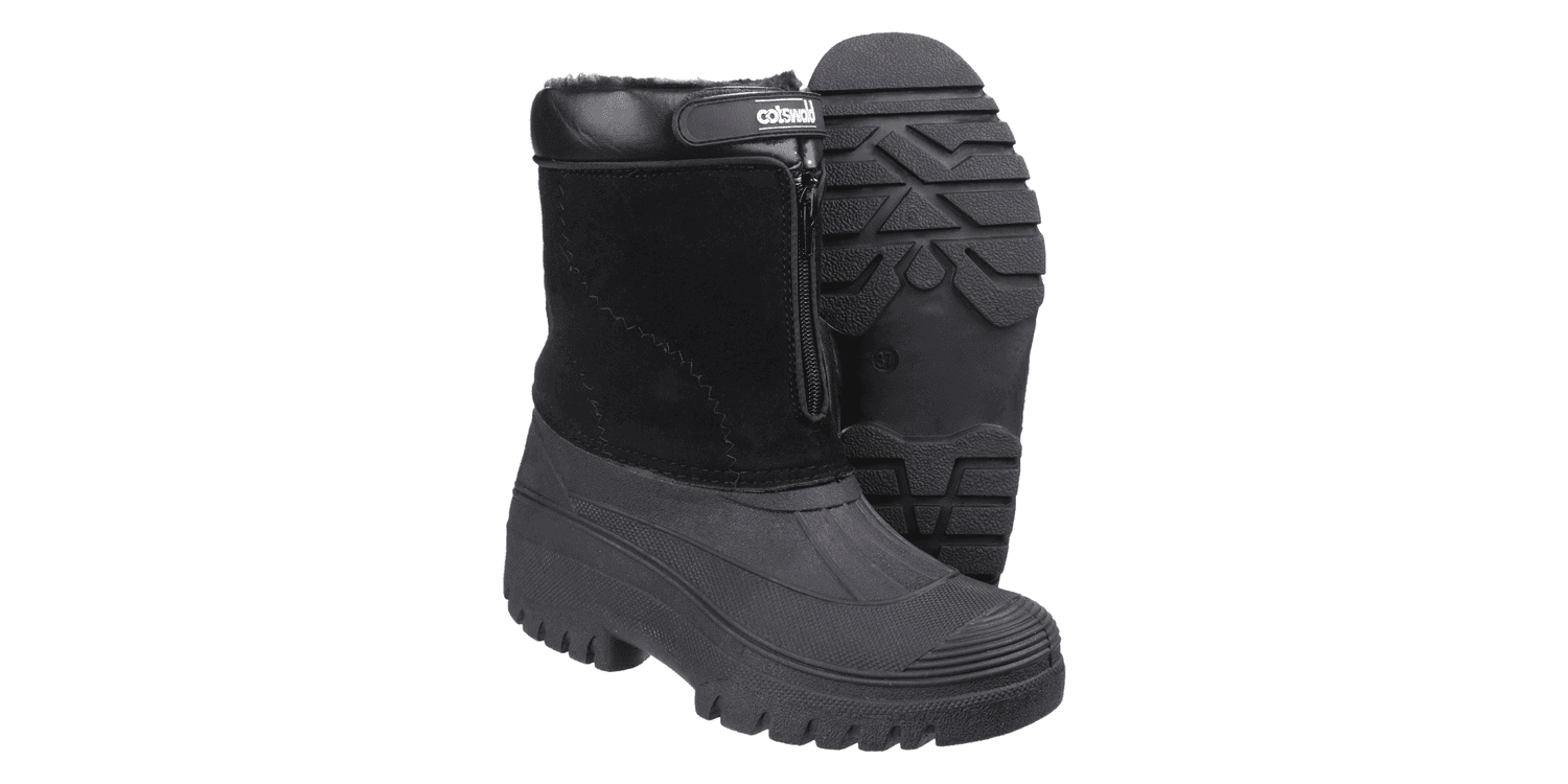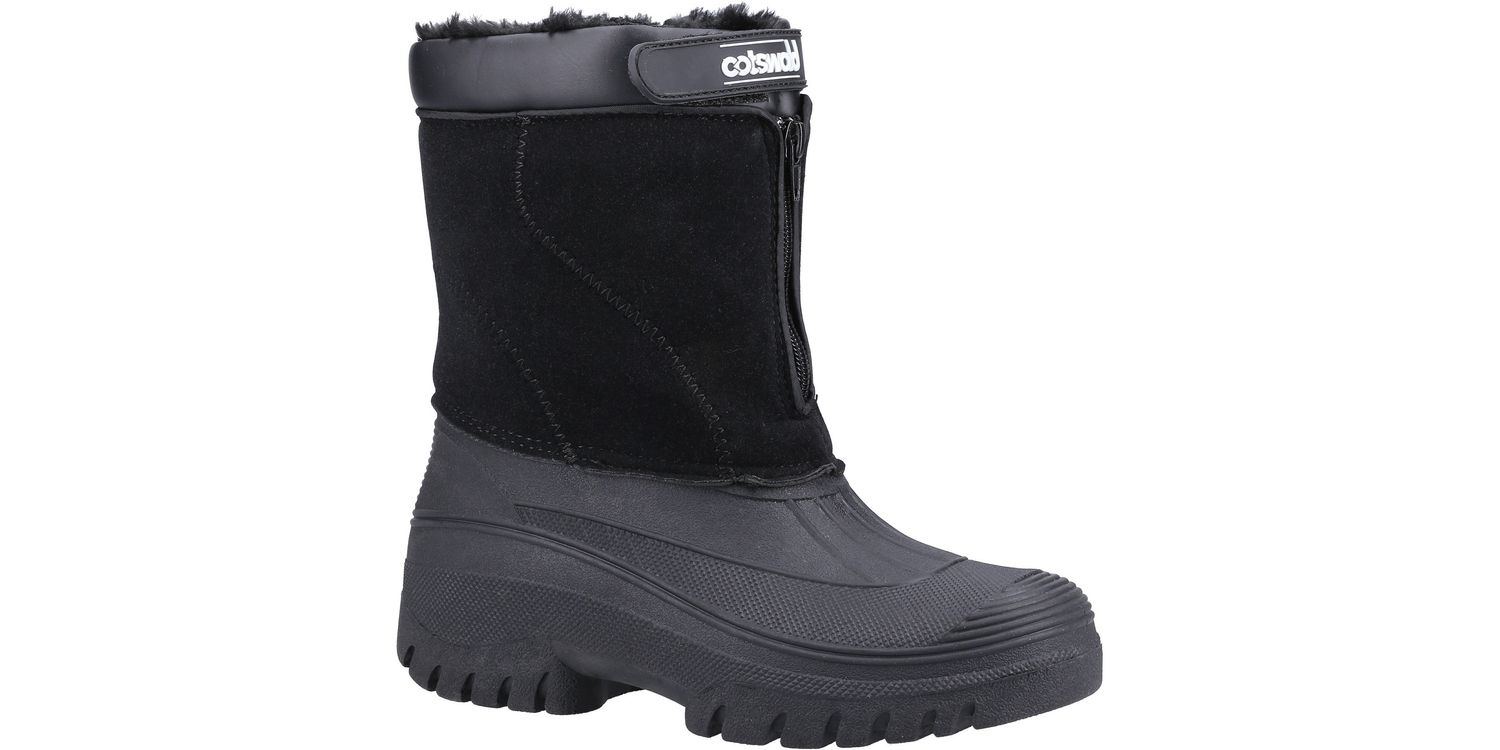 Venture hybrid weather boot from Cotswold Shoes. A stylish design with a luxury Faux Suede shaft and a fully waterproof moulded rubber galosh designed to combat the elements. Front zip entry and warm faux fur lining.