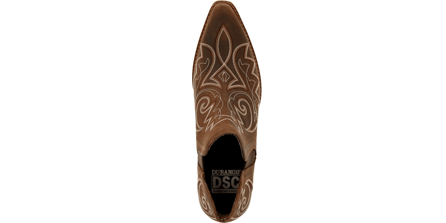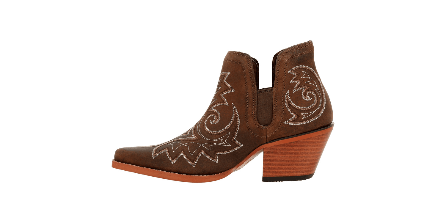 Durango Ladies Crush Ankle Boots combine timeless western charm with modern comfort. Crafted from premium full-grain leather, these stylish ankle boots feature a snip toe and a vintage-finished rubber outsole for a classic look. The lateral elastic side gore expansion ensures an easy fit, while the soft mesh lining and microfibre trim provide all-day comfort, making them perfect for any occasion.