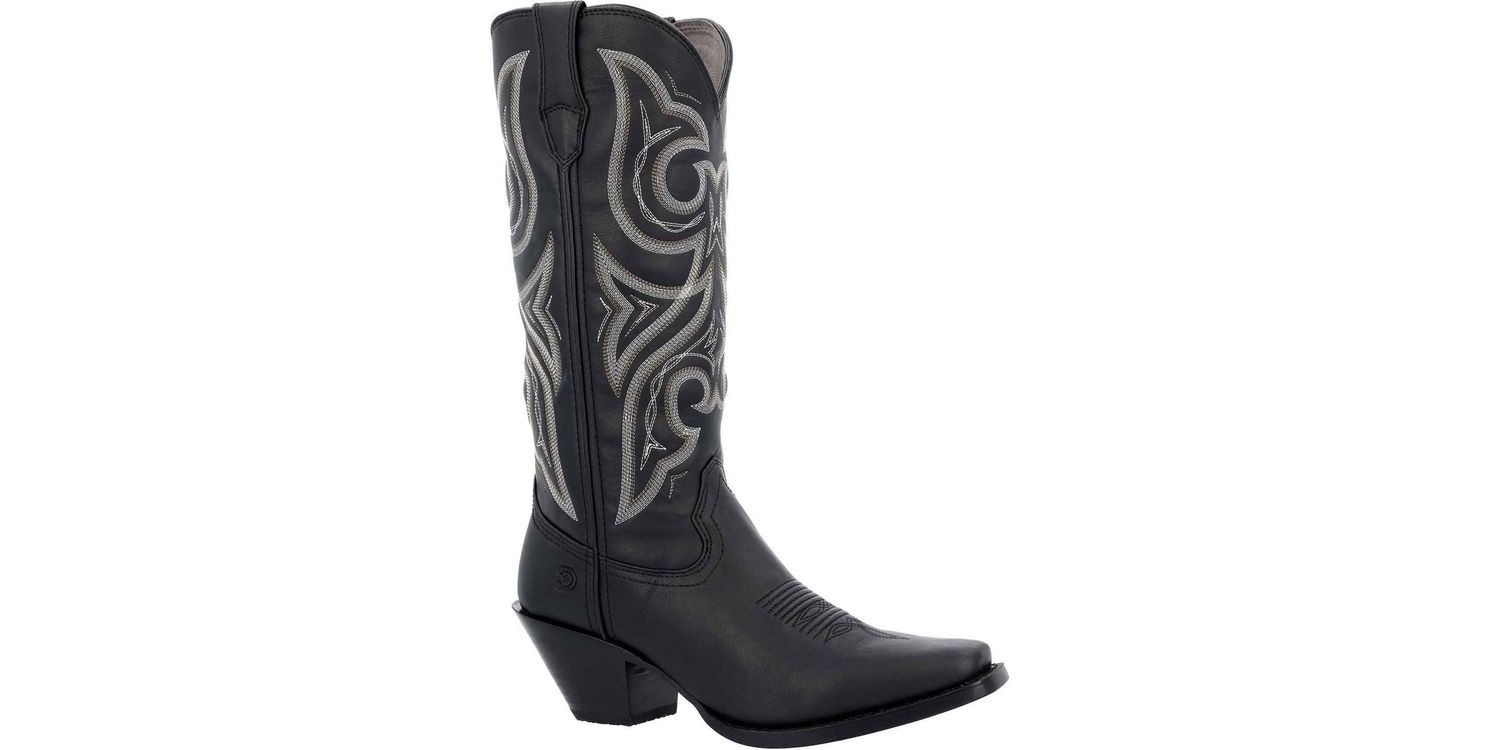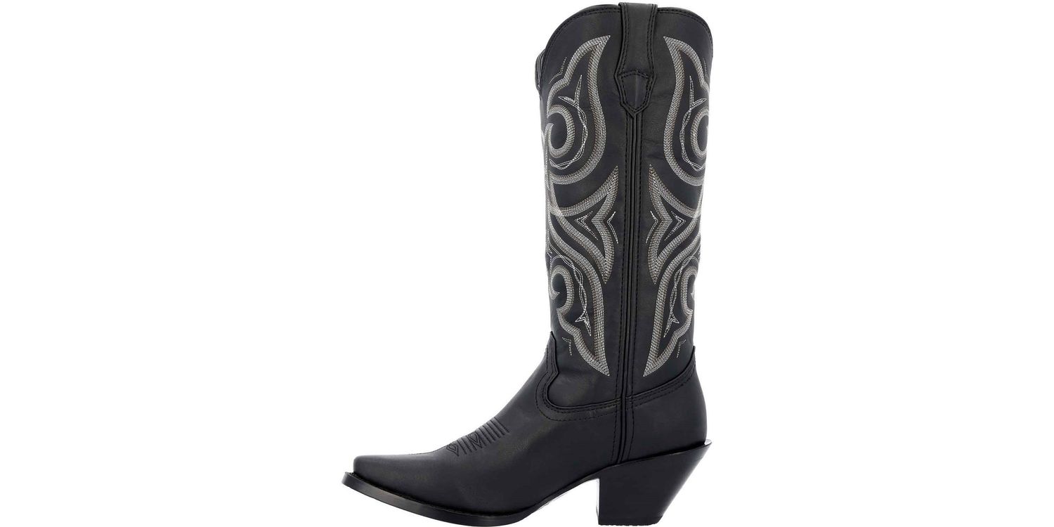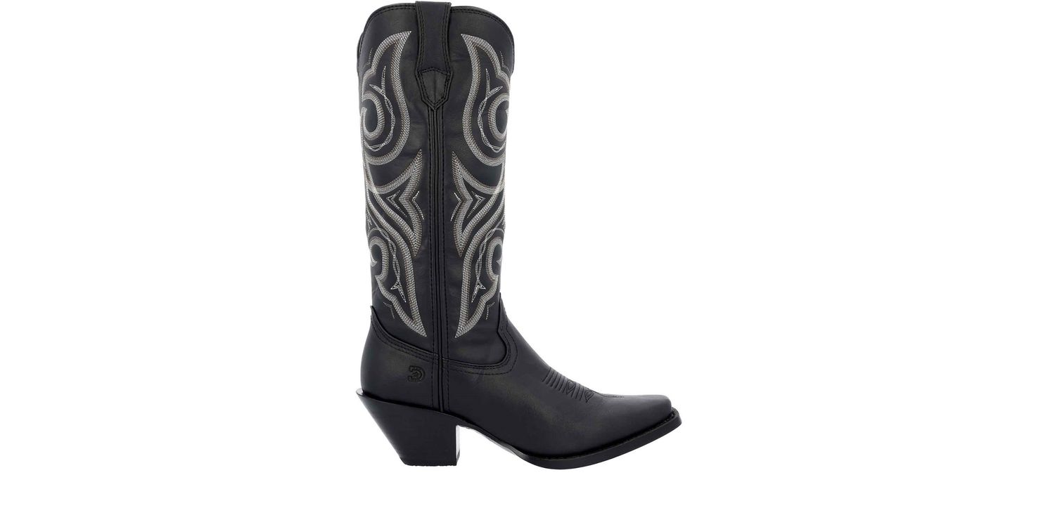 The Durango Ladies Crush Mid Boot in Western Black Beauty offers a perfect blend of classic style and modern comfort. With a sleek 13-inch profile, these boots feature a snip toe for a refined western look and a soft mesh lining for all-day comfort. The Cushion Flex insole ensures support, while the rubber outsole with a vintage finish adds durability, making them ideal for any occasion.