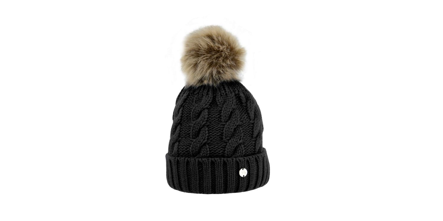 Hy Equestrian Melrose Cable Knit Bobble Hat - Black