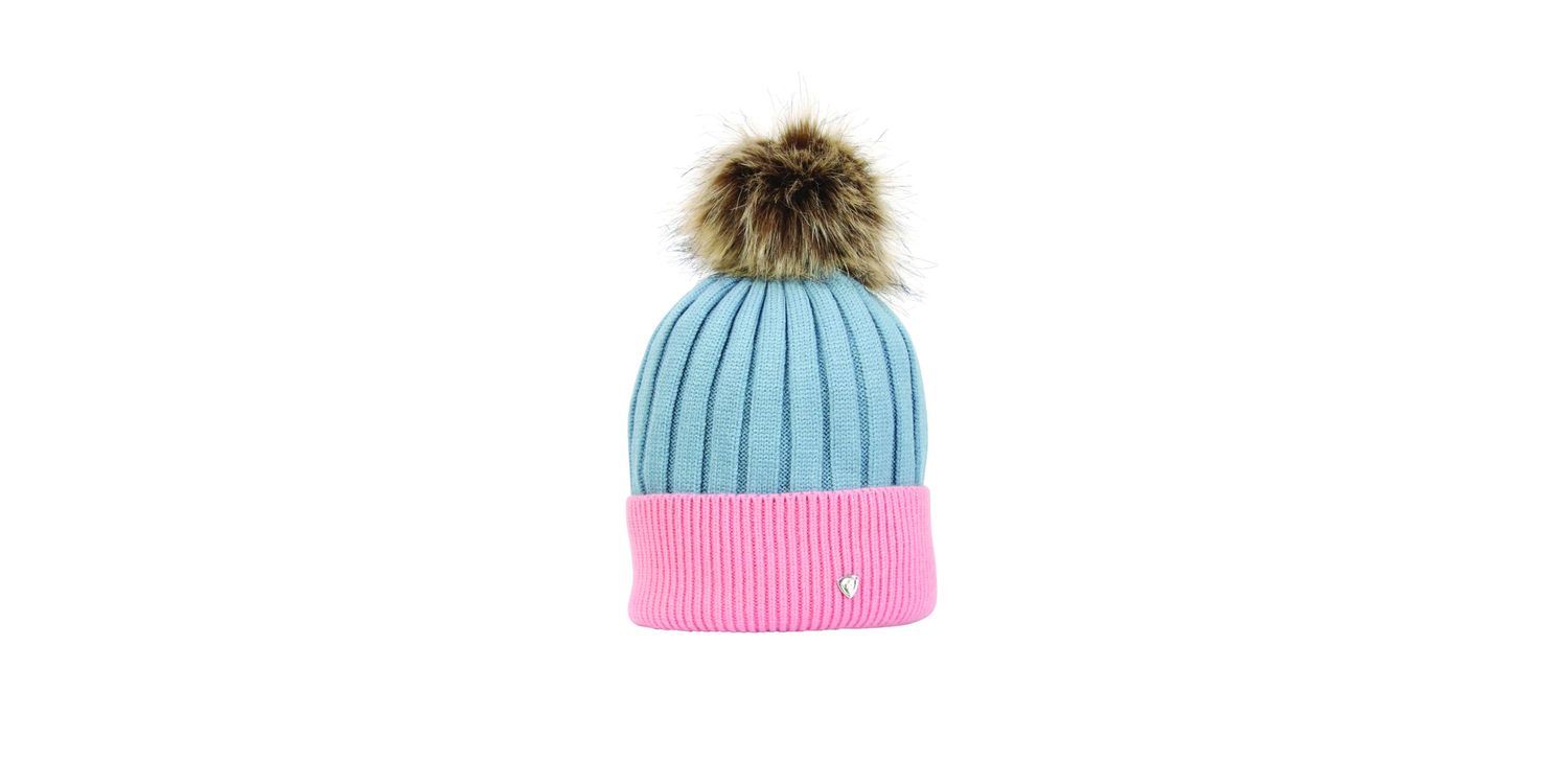 Know the meaning of luxury with this stylish bobble hat! Designed with two colours that complement one another beautifully, the hat also features a large detachable faux fur bobble. The metal disc featuring the Hy Equestrian logo is secured with tonal stitching, adding the finishing touch.