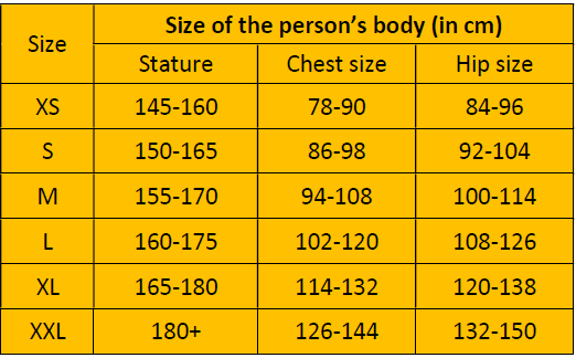 XXL124 - 134 cm108 - 116 cm90 cm185+95 kg +
