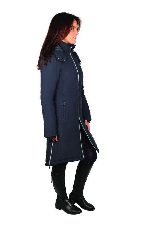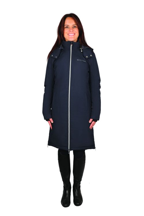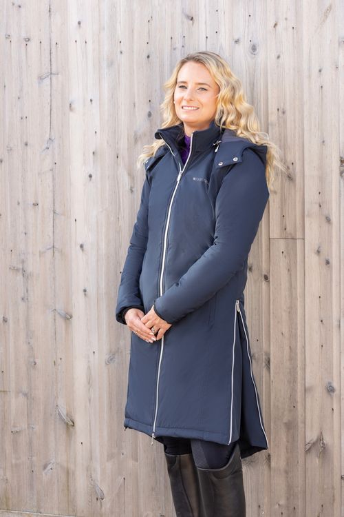 An essential jacket for the winter months! A smart and well fitted long waterproof and windproof padded coat to keep you dry, warm and protected from the cold weather. Shaped with a lower back, zipped riding vents and two way front zip to not only look stylish, but provide extra protection and ease of movement, especially when riding.