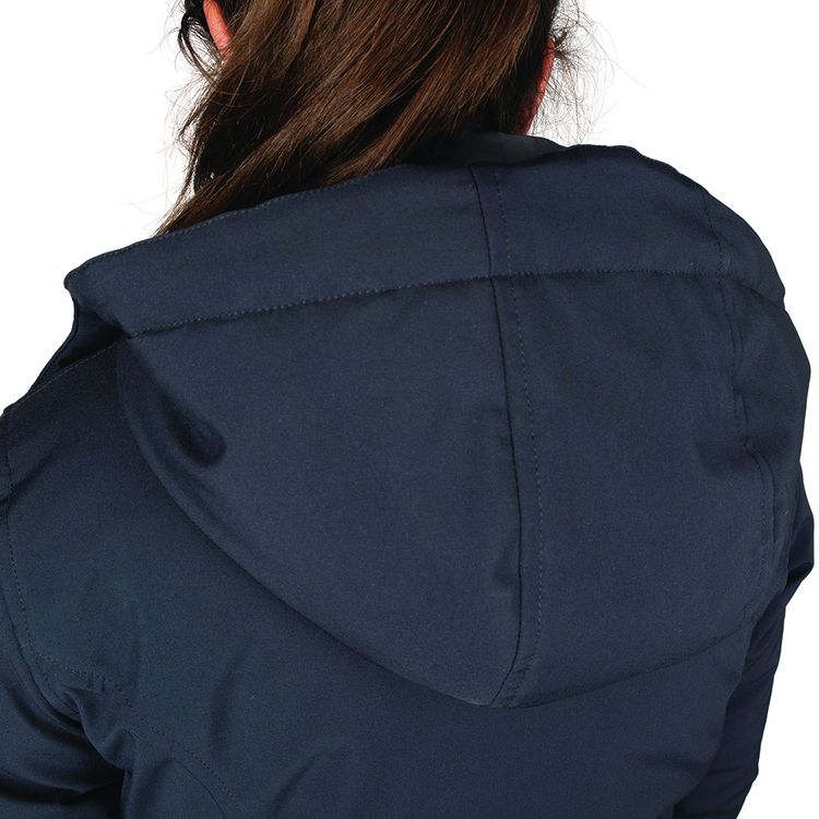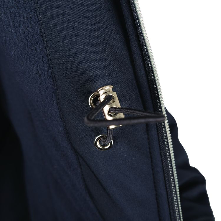 A hood provides extra protection from inclement weather, that can also be unzipped and removed if desired. With adjustable waist for a flattering fit, cosy soft fleece lining for extra warmth and snug storm and thumb hole cuffs for extra protection. Silver zips add a classy finish, including to the two zipped front pockets. Finished with Hy Equestrian logo to the chest and emblem to the back of the neck.