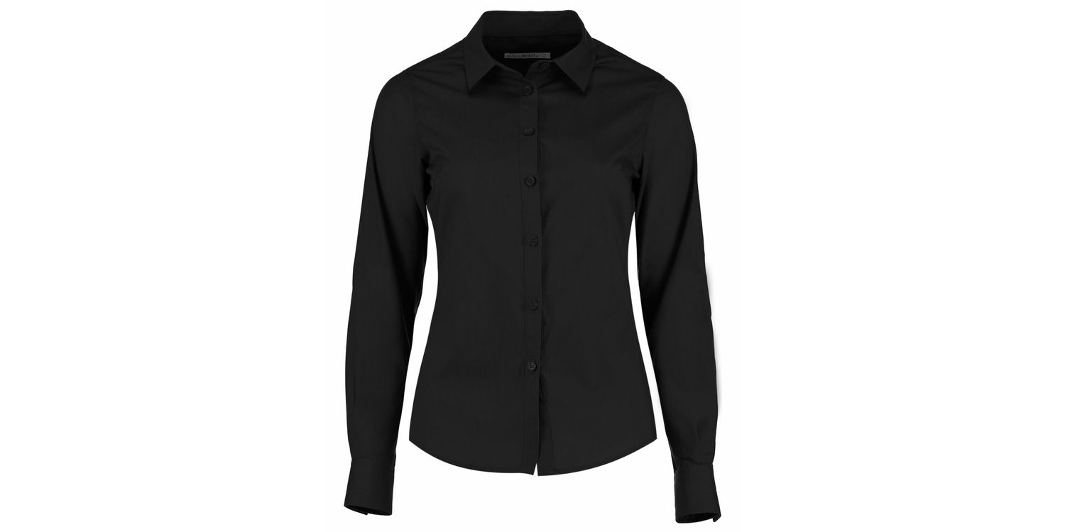 Kustom Kit Tailored Long Sleeve Poplin Shirt Black