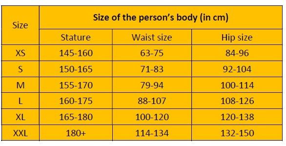• Size XS – XXL