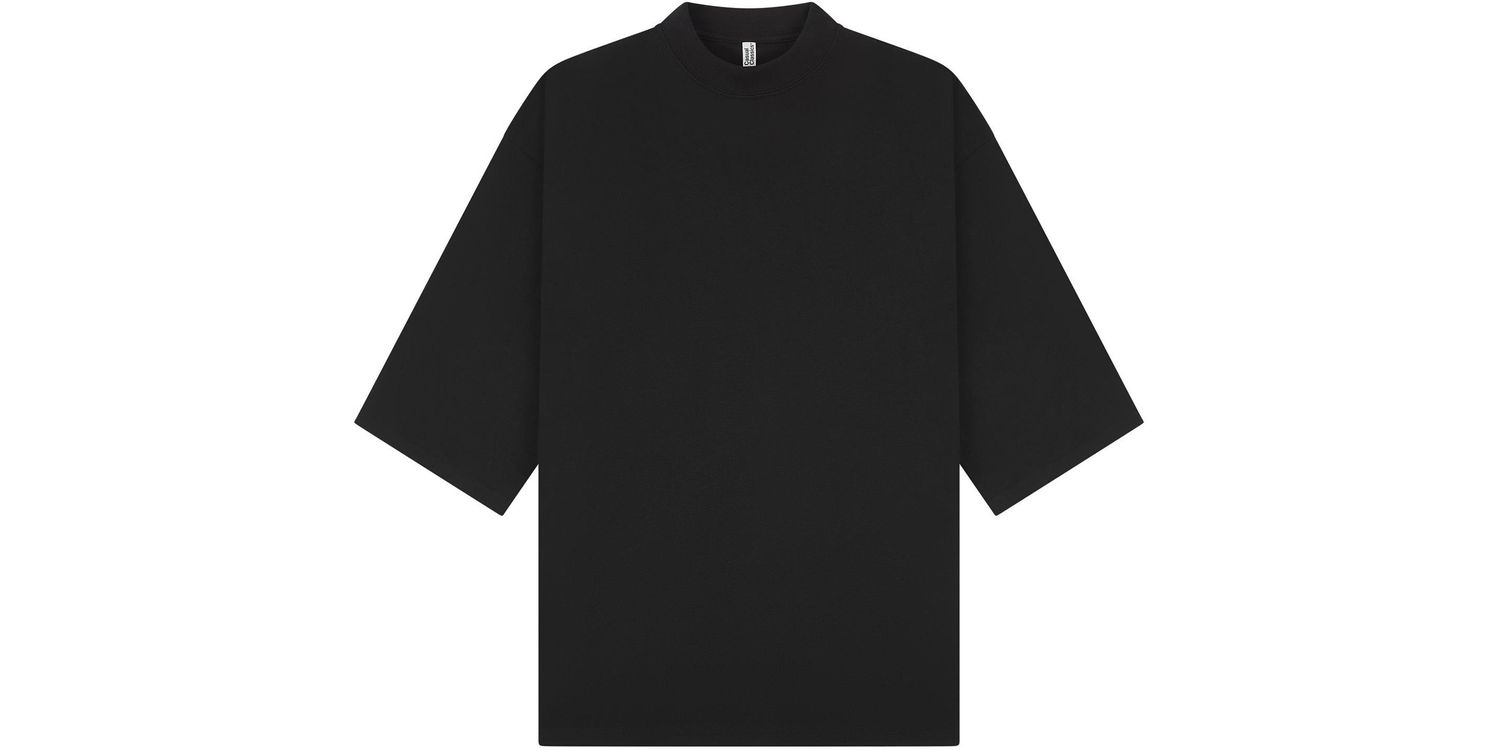 Designed with a higher flat knit collar and extended crew neck, this oversized t-shirt features side seams, a taped neck and shoulder for enhanced shape and wearability. The smooth interlock surface and fine 30 singles yarn ensure a clean finish for print or embroidery.