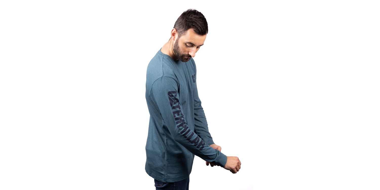 Caterpillar Trademark Banner Long Sleeve T-Shirt Teal